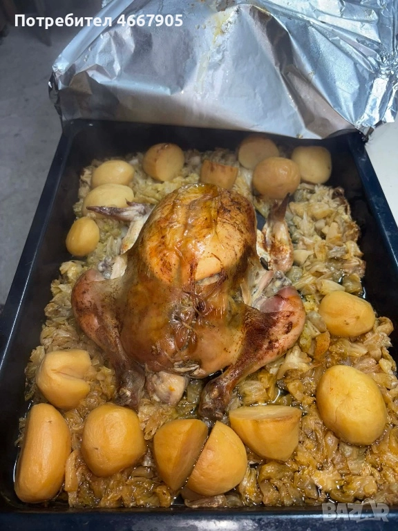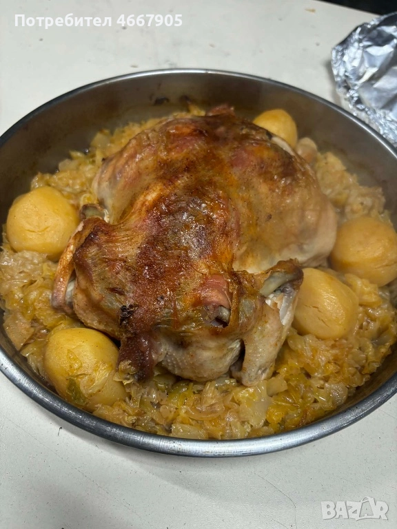 •Пълнена пуйка на пещ – пълнена с ориз, гъби печурка, кисело зеле и картофи,