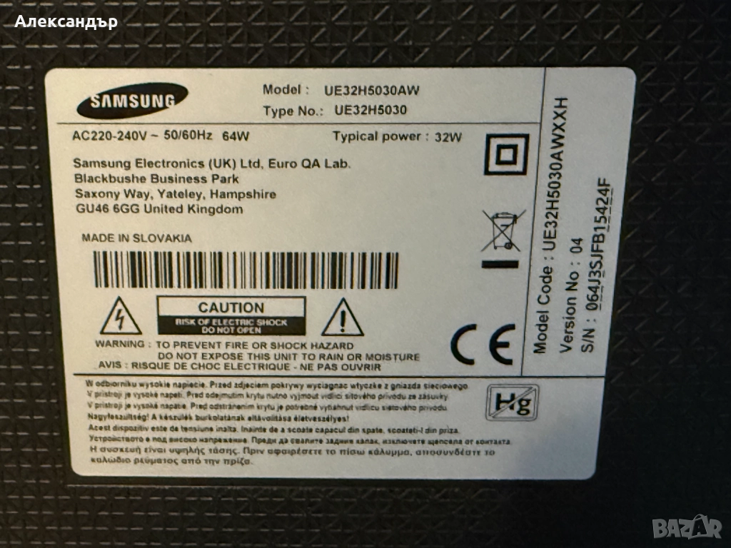 Телевизор SAMSUNG 32" UE32H5030, снимка 1 - Телевизори - 52923061 Телевизор SAMSUNG 32" UE32H5030, снимка 2 - Телевизори - 52923061 Телевизор SAMSUNG 32" UE32H5030, снимка 3 - Телевизори - 52923061 Телевизор SAMSUNG 32" UE32H5030, снимка 4 - Телевизори - 52923061 Телевизор SAMSUNG 32" UE32H5030, снимка 5 - Телевизори - 52923061 Телевизор SAMSUNG 32" UE32H5030, снимка 6 - Телевизори - 52923061 Телевизор SAMSUNG 32" UE32H5030, снимка 7 - Телевизори - 52923061 Телевизор SAMSUNG 32" UE32H5030, снимка 8 - Телевизори - 52923061 Телевизор SAMSUNG 32" UE32H5030, снимка 9 - Телевизори - 52923061 Телевизор SAMSUNG 32" UE32H5030, снимка 10 - Телевизори - 52923061 Телевизор SAMSUNG 32" UE32H5030, снимка 11 - Телевизори - 52923061 Телевизор SAMSUNG 32" UE32H5030, снимка 12 - Телевизори - 52923061 1/12