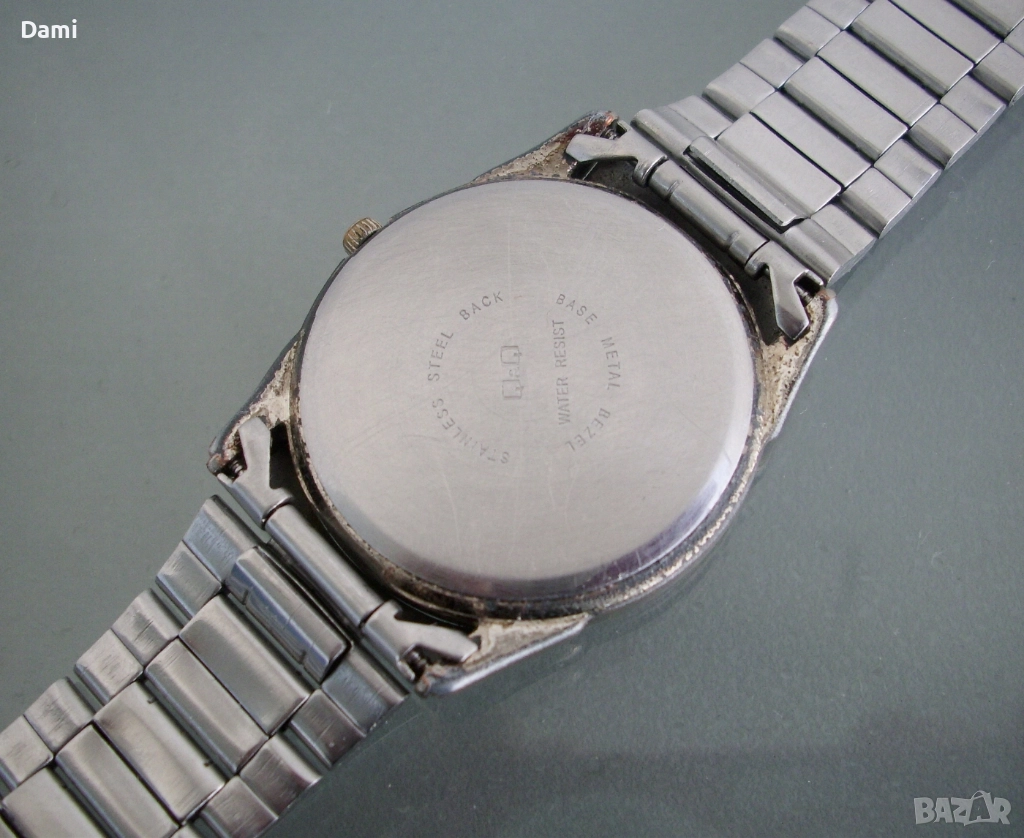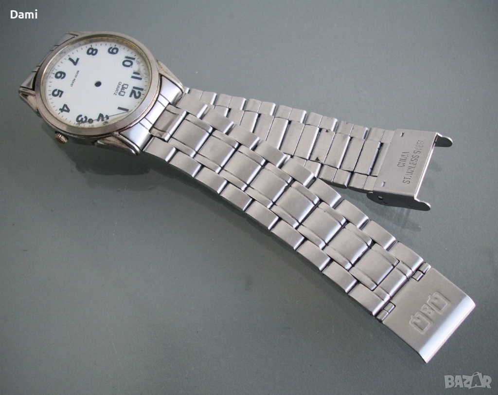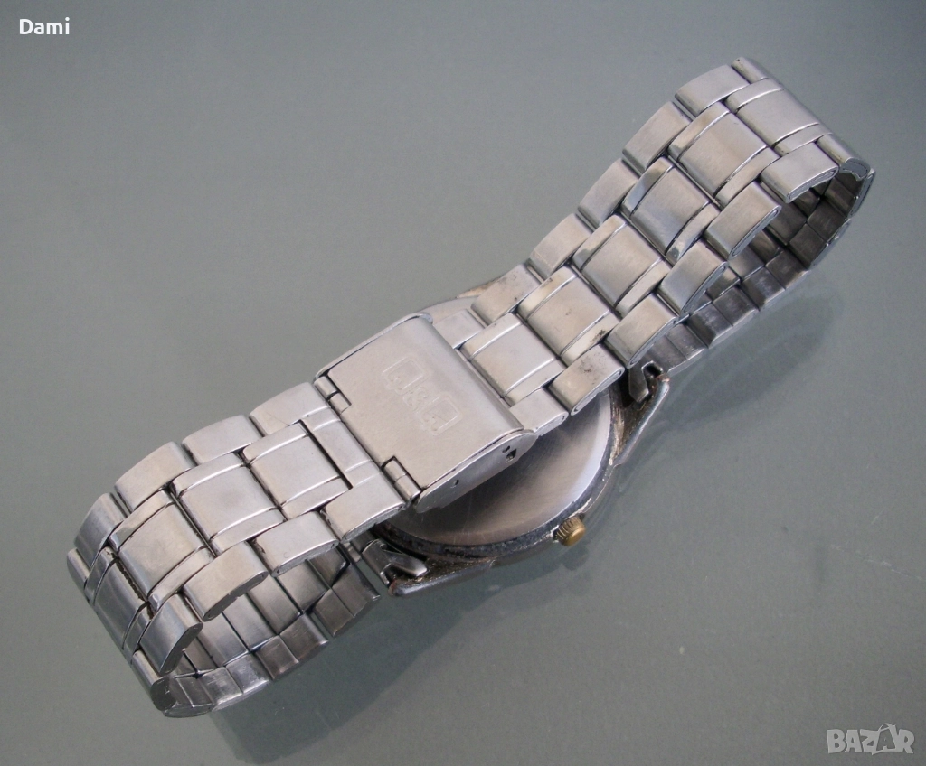3. Мъжки браслет, маркиран Q& Q, монтиран е на неработещ оригинален часовник. Дължина 190 мм, ширина 20 мм, окачване 10 мм.