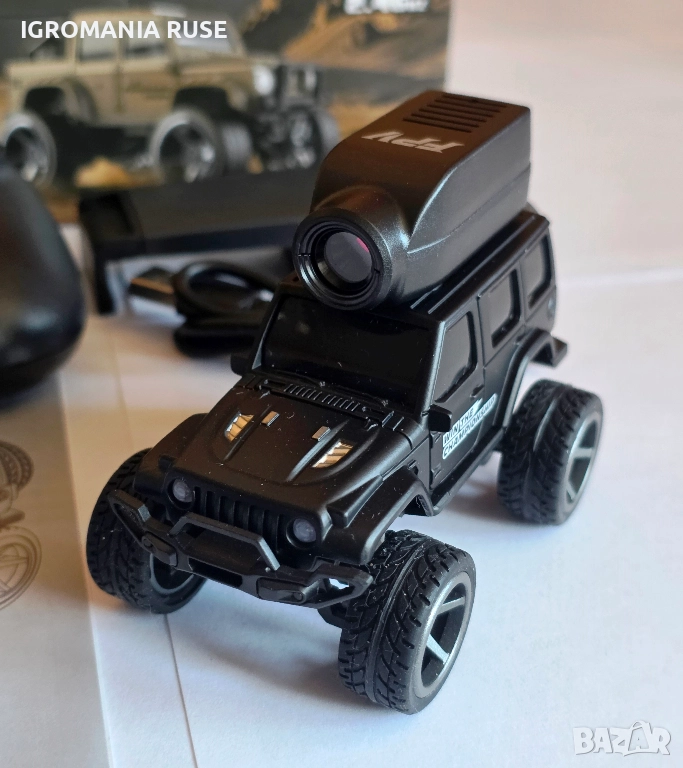 Малък джип за забавление и шпиониране, подходящ за малки и големи деца. Дистанционно с щипка за смартфон. USB зареждаема батерия.