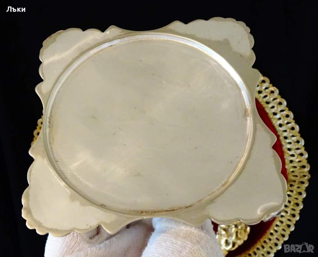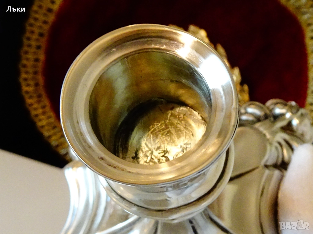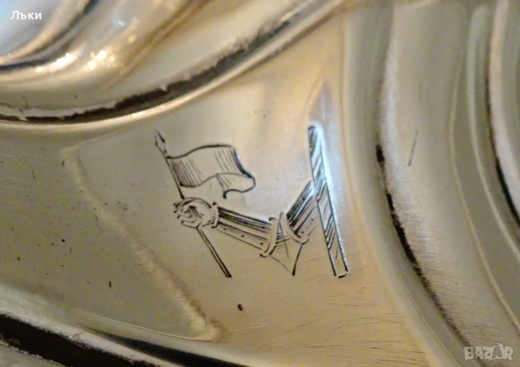 от ниска проба сребро,дебело посребрен с висока проба сребро.Маркиран с печат