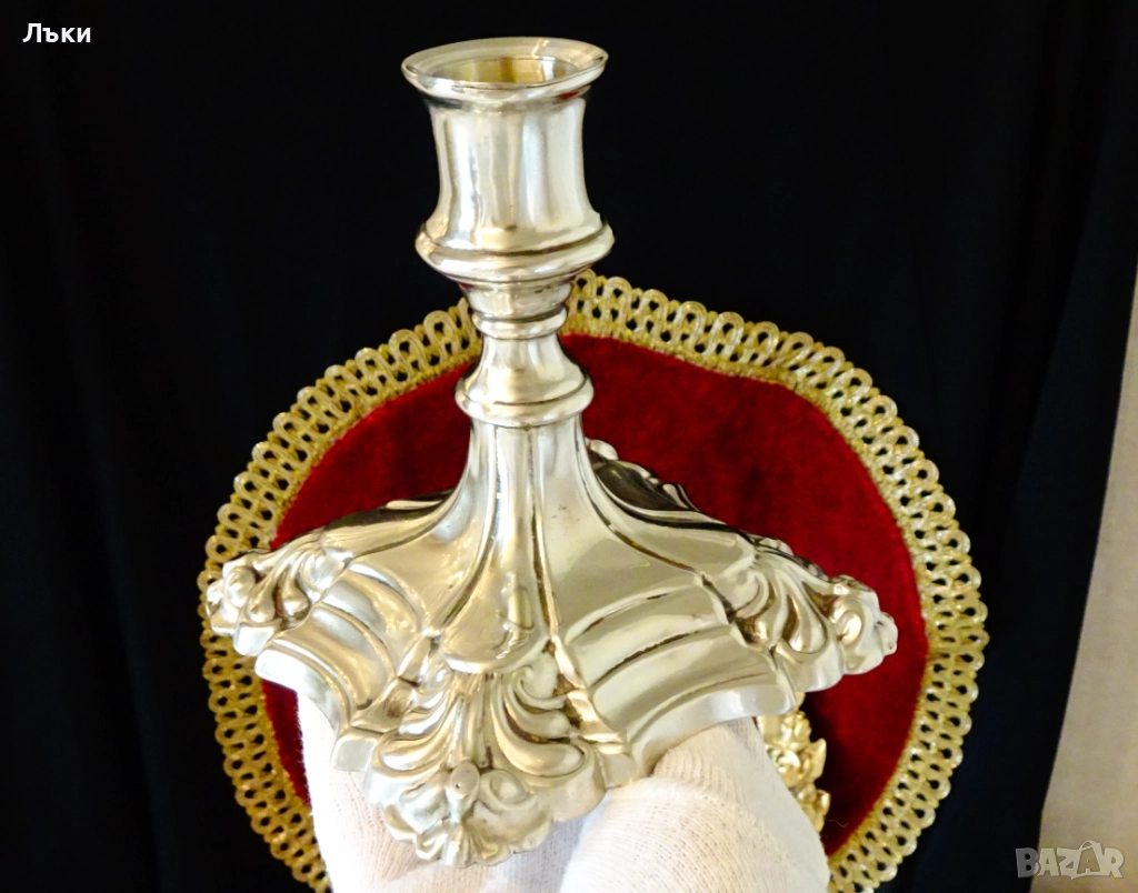 Стар английски посребрен свещник,майсторска ръчна изработка