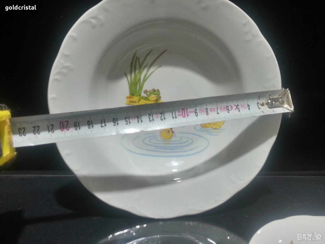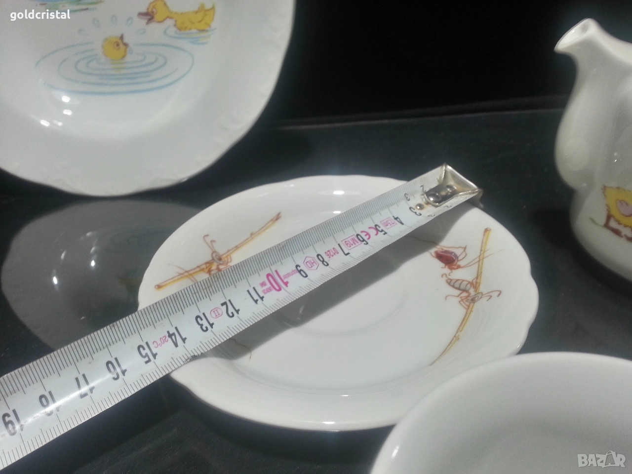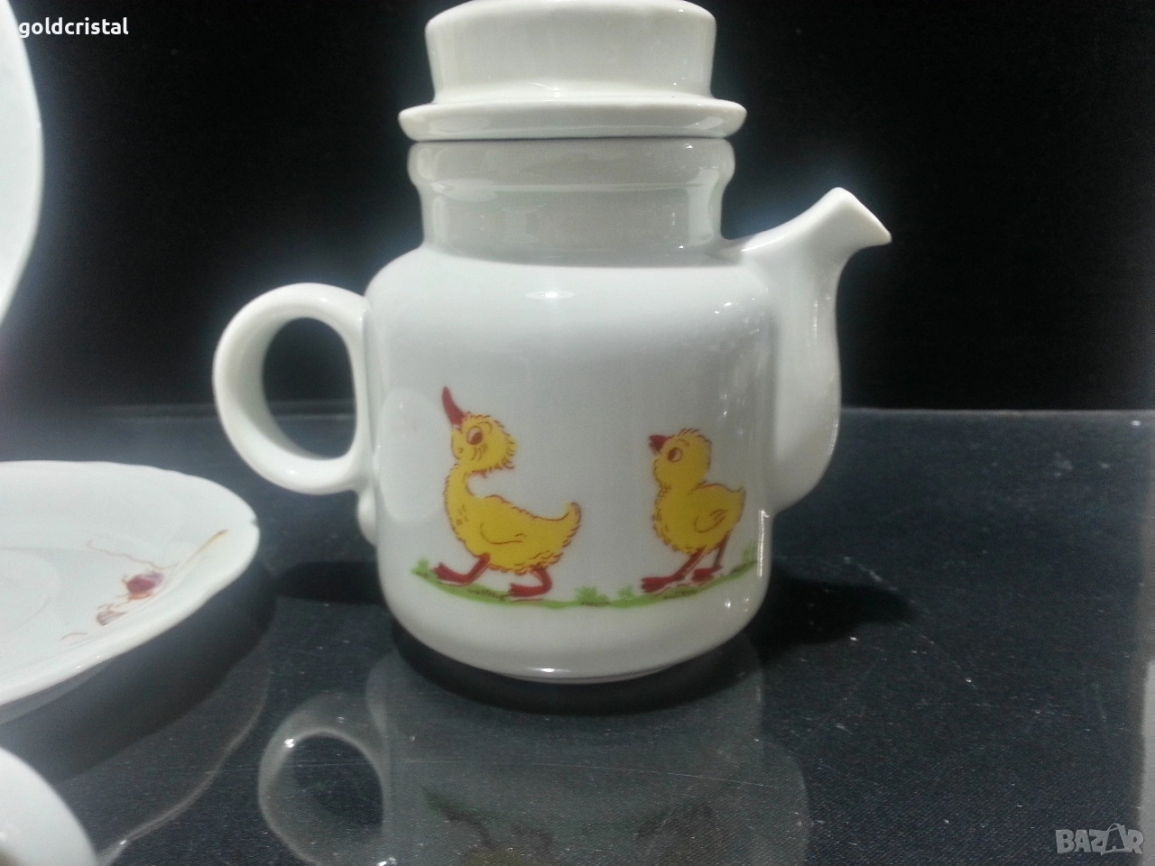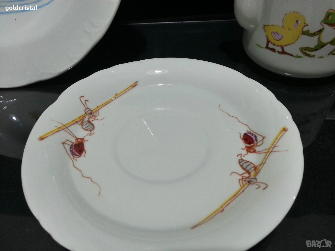 Стар български порцелан Разград дълбока чиния чашка с чинийка и чайниче детски комплект неизползвани сервиз комплект сет лот ретро арт декор винтидж колекция стари старинни антикварни предмети обзавеждане за дома и семейството подходящи за подарък за ценители и колекционери
