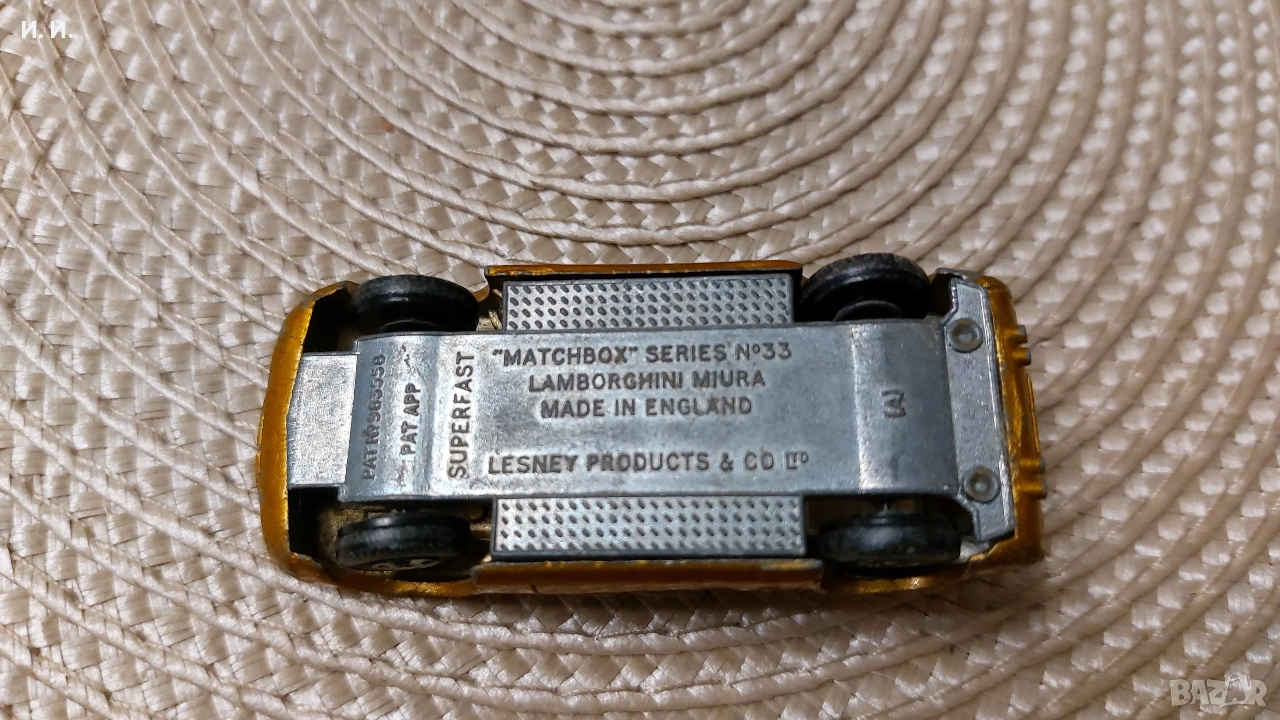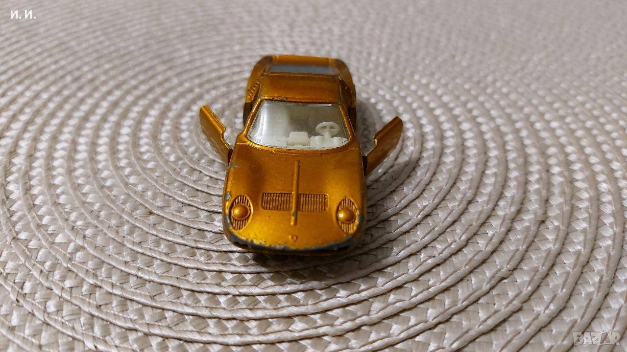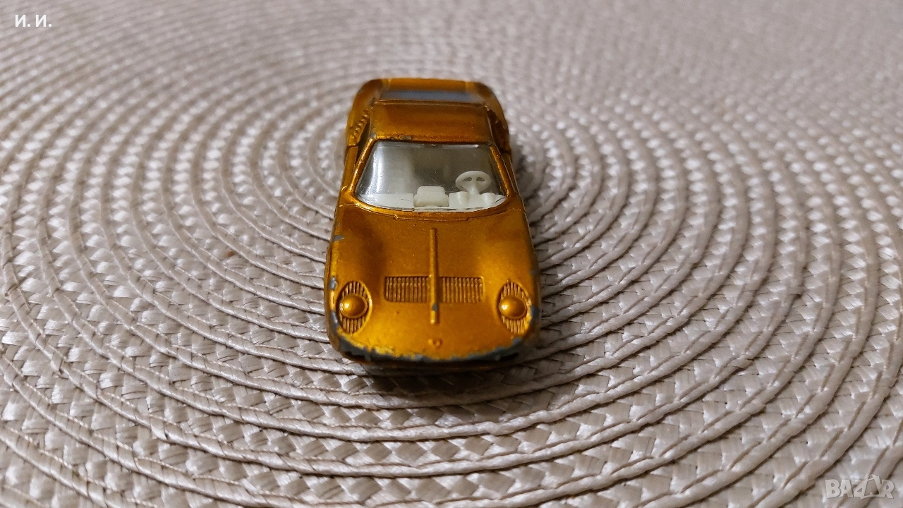1969 Lesney Matchbox Superfast No. 33 Lamborghini Miura Gold Diecast Car. Състоянието е видно от снимките. Ако проявявате интерес пишете. Само лично предаване! Без куриери!