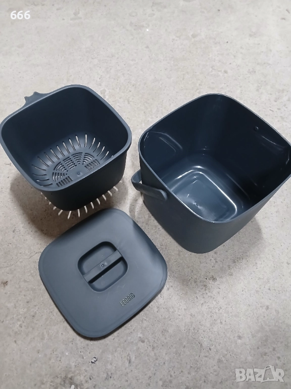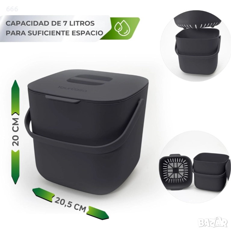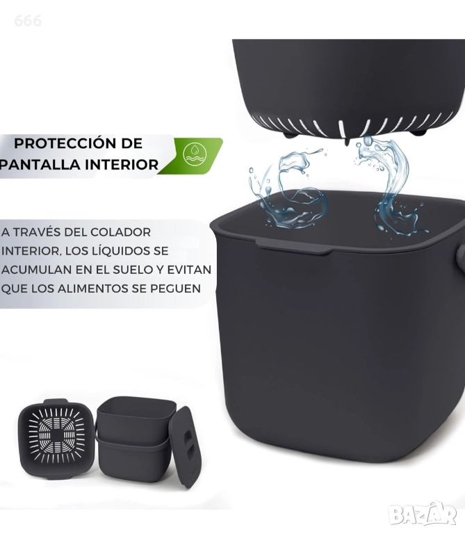 ПЪРВИ БИО КУХНЕНСКИ КОМПОСТЕР С ПРЕМАХВАЩА СЕ ЦЕДКА: Благодарение на подвижната вътрешна цедка, никакви досадни хранителни остатъци няма да полепнат по компостера. Това означава, че течностите и органичните отпадъци остават отделени. В повечето компостери органичните отпадъци изсъхват и е много трудно да се отстранят от контейнера за органични отпадъци.