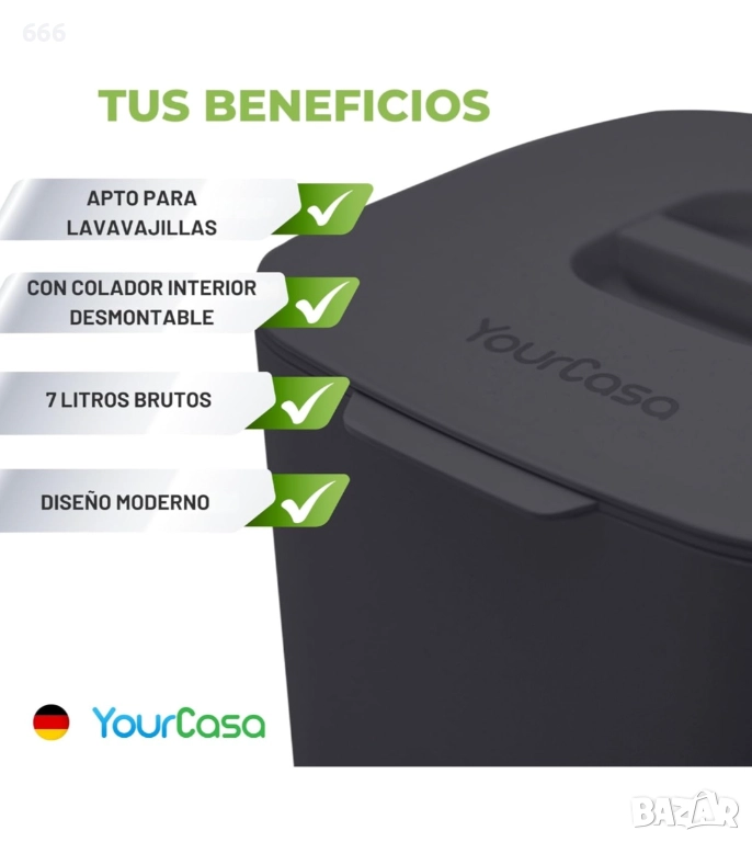 ЛЕСНО ПОЧИСТВАНЕ В СЪДОМИЯЛНА МАШИНА: Повечето кошчета за кухненски биоотпадъци не са подходящи за съдомиялна машина. Нашият кухненски компостер е изработен от материал, който може да се мие в съдомиялна машина. Това ви спестява необходимостта от ръчно миене на сухи органични отпадъци. По този начин вашият малък контейнер за кухненски биоотпадъци винаги ще остане чист и хигиеничен, както отвътре, така и отвън.