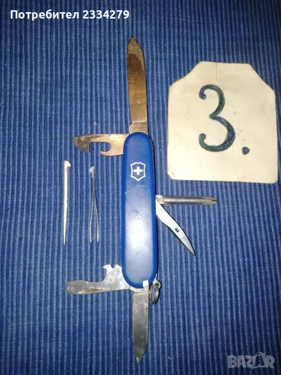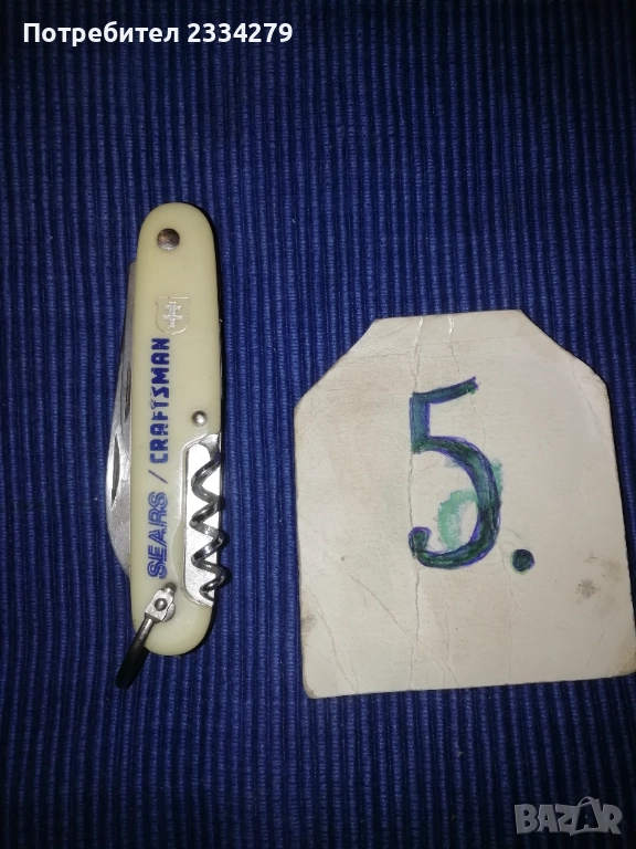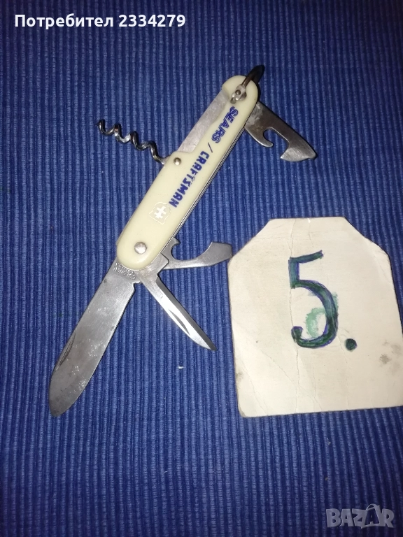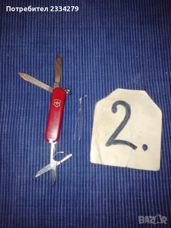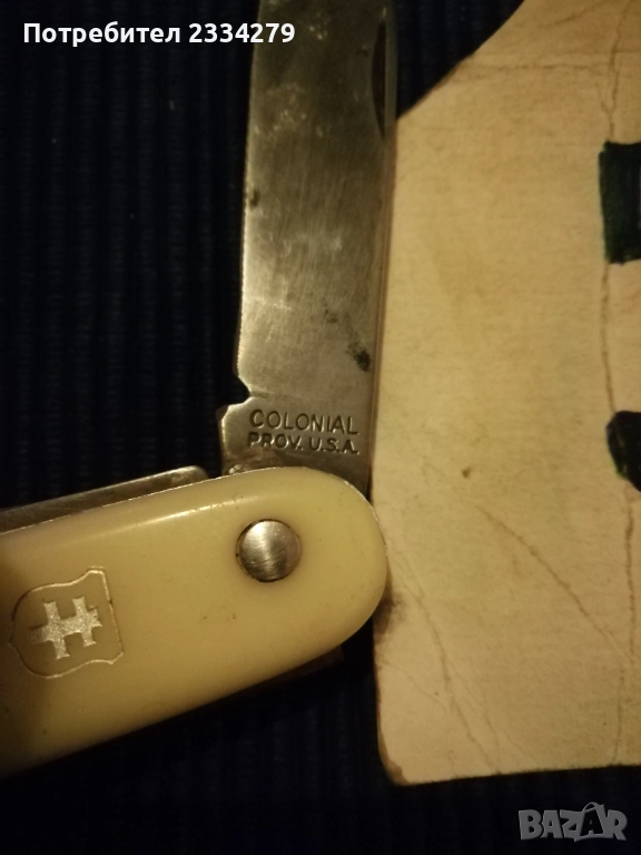 VICTORINOX" SWISS MADE STAINLESS, състои се от клечка, пенсета, две отварячки, две остриета, кръста та отсерка, малко острие, цена 20лв.; N:4 (ПРОДАДЕНА) ; N:5 стара американска джобна ножка, много функционални ,,COLONIAL"-PROF. USA, цена 13€.; N:6 военен нож-щик към автомат има накован щемпел ,,АК-47" СССР., размери 26х3см., дебелина 5мм., цена 15€