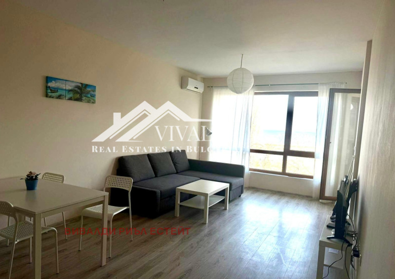 Просторна дневна с кухня и трапезария, спалня, баня с тоалетна и тераса с морска гледка, идеална за сутрешно кафе или романтични вечери.
