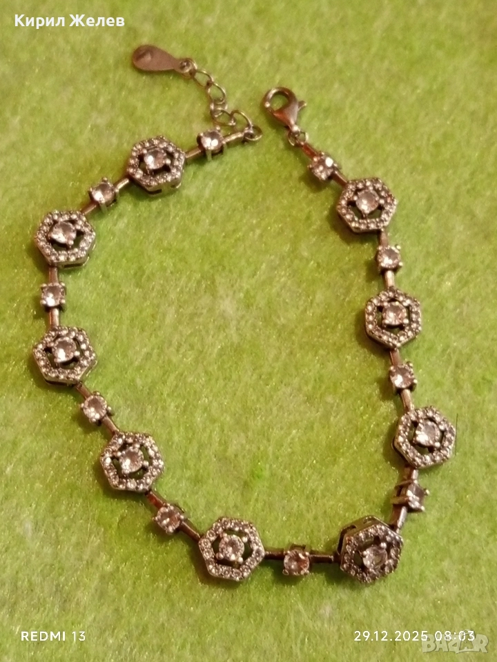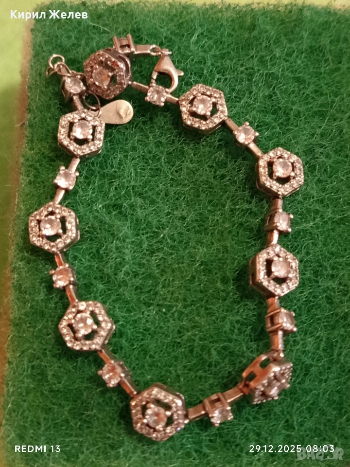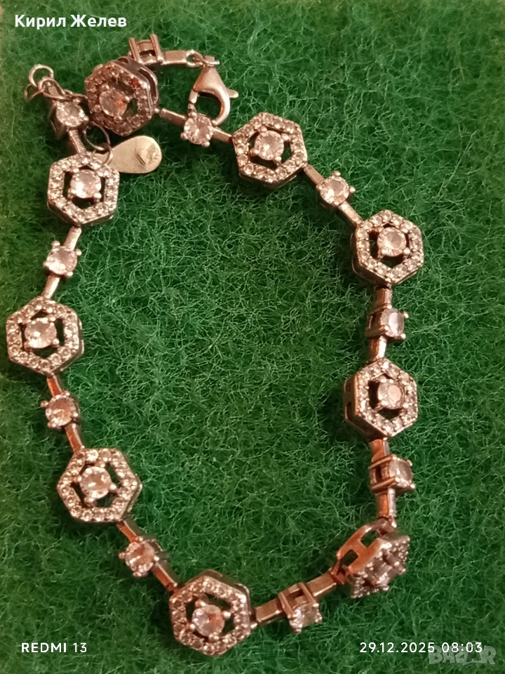 Сребърна гривна обсипана с цирконий който озаряват бижуто с изключителен блясък и сияйност 40565