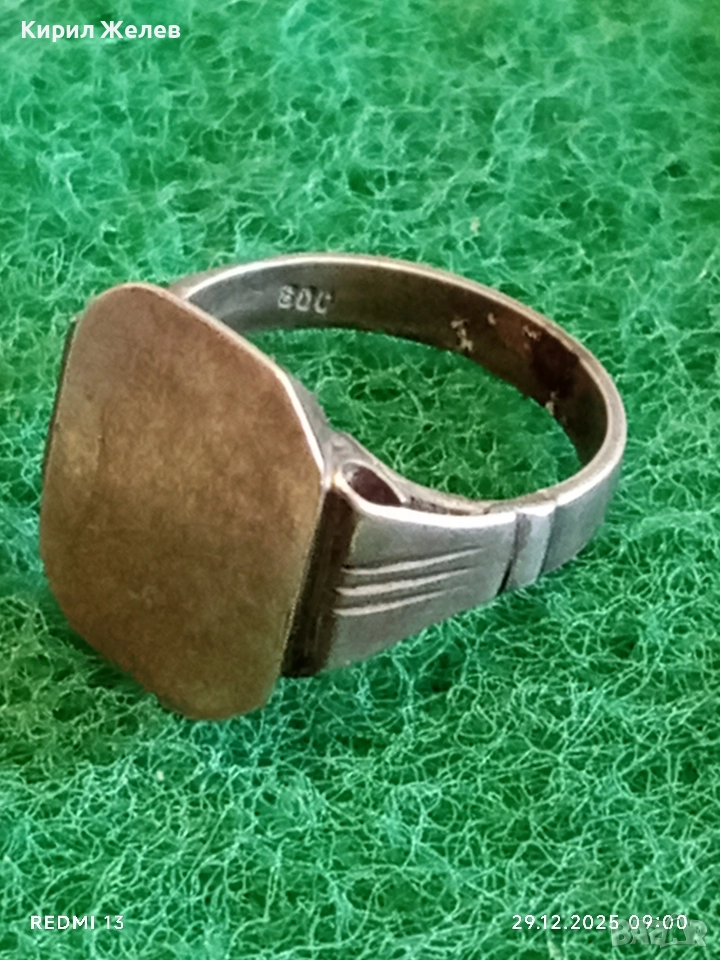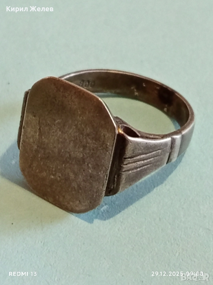Винтидж сребърен пръстен масивен тип сигнет Английски стил 51798