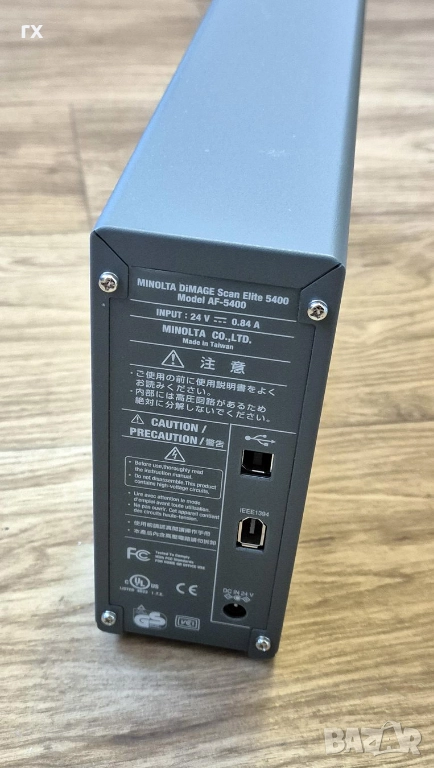 Липсват: Държачи за негативи/диапозитиви, захранващ адаптер, USB/FireWire кабели и оригинален софтуер.
