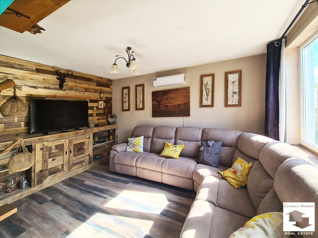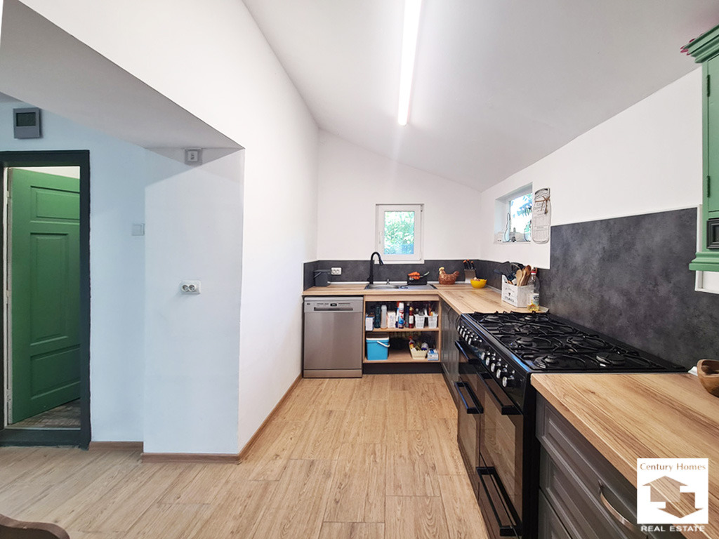 Къщата разполага с обща жилищна площ от 140 кв.м. и е напълно реновирана, със съвременни материали и внимателно подбрани детайли, които създават уют и стил. Интериорът е с PVC дограма, дървени вътрешни врати, стени с латекс, тапети и мазилка, а подовете са покрити с ламиниран паркет и теракот, което осигурява комфорт и дълготрайност.