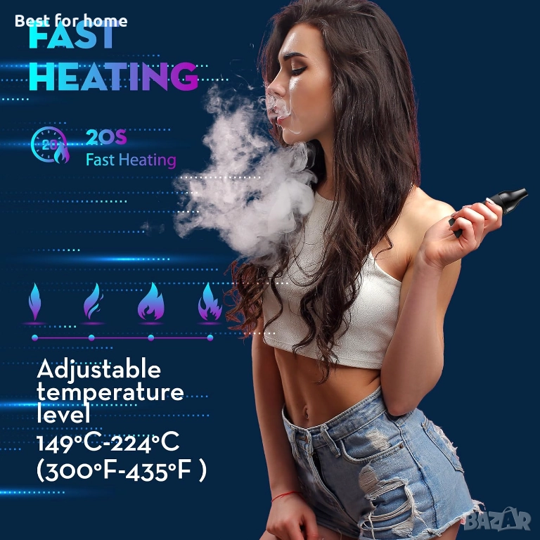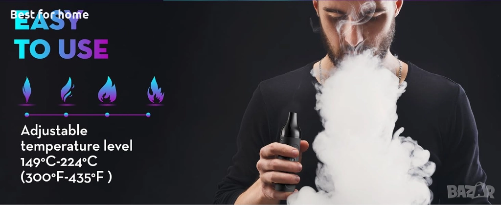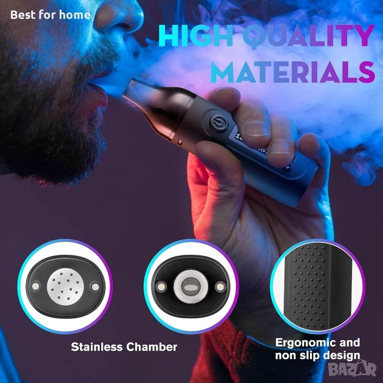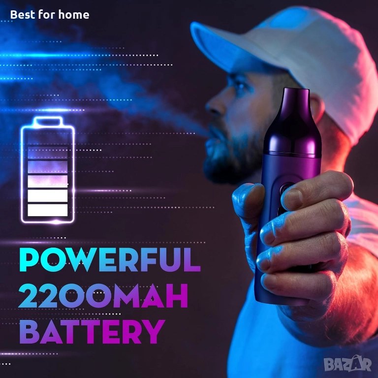 С поддръжка на билки, прецизен контрол на температурата, батерия 2200 mAh, LCD дисплей, преносим за из път (тъмночерен)