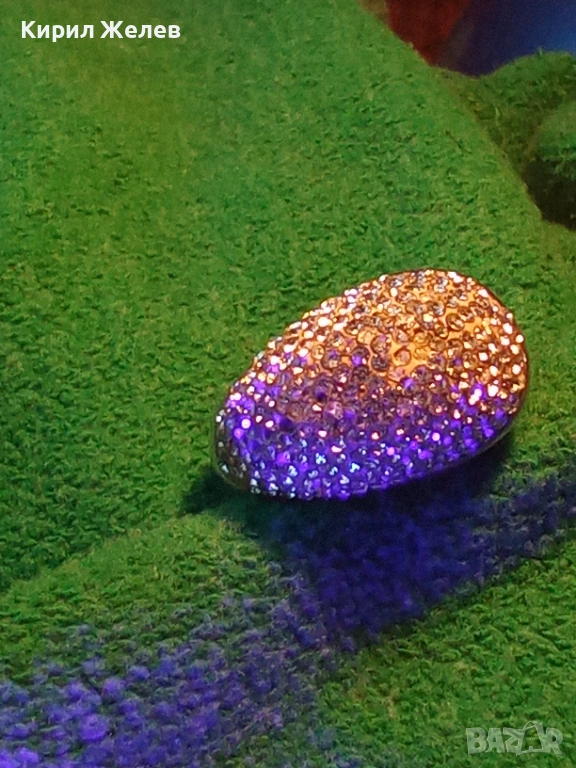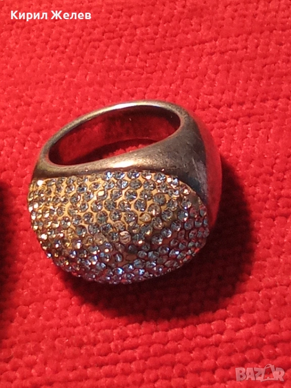 Прекрасен скъпоценен сребърен пръстен с ювелирно инкрустирани кристали тип бомбе 51821