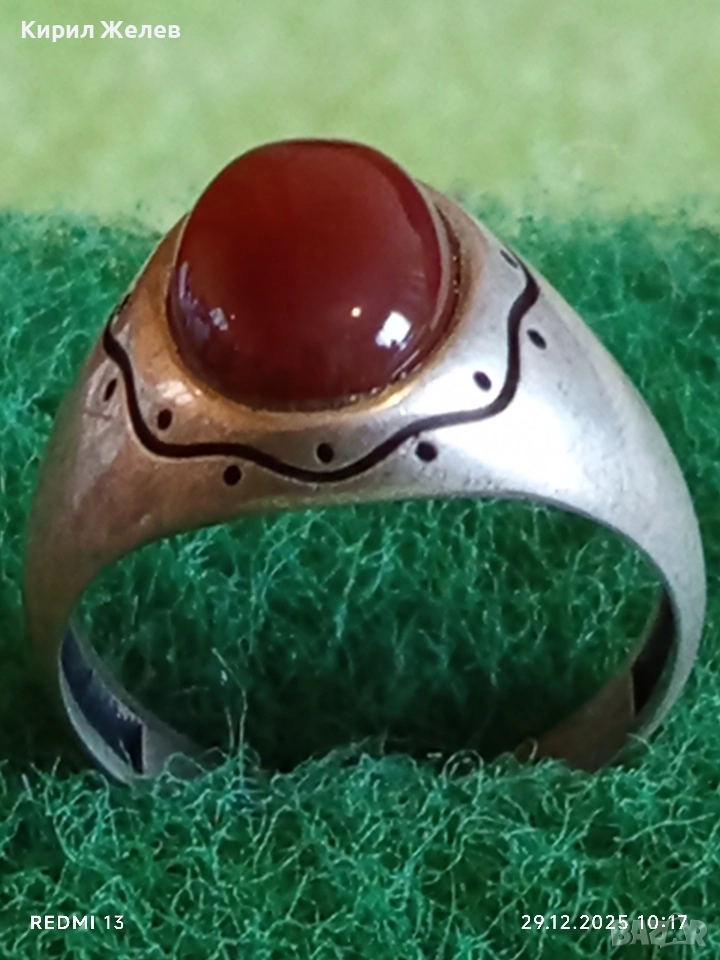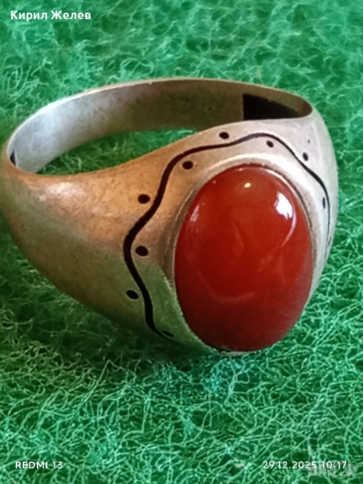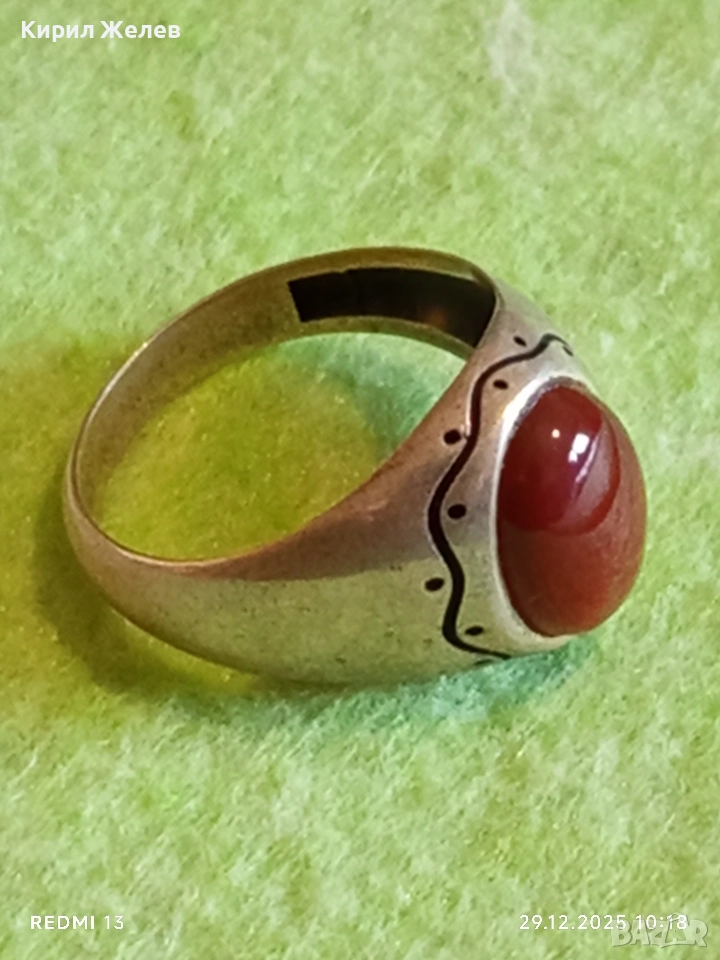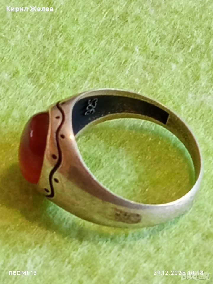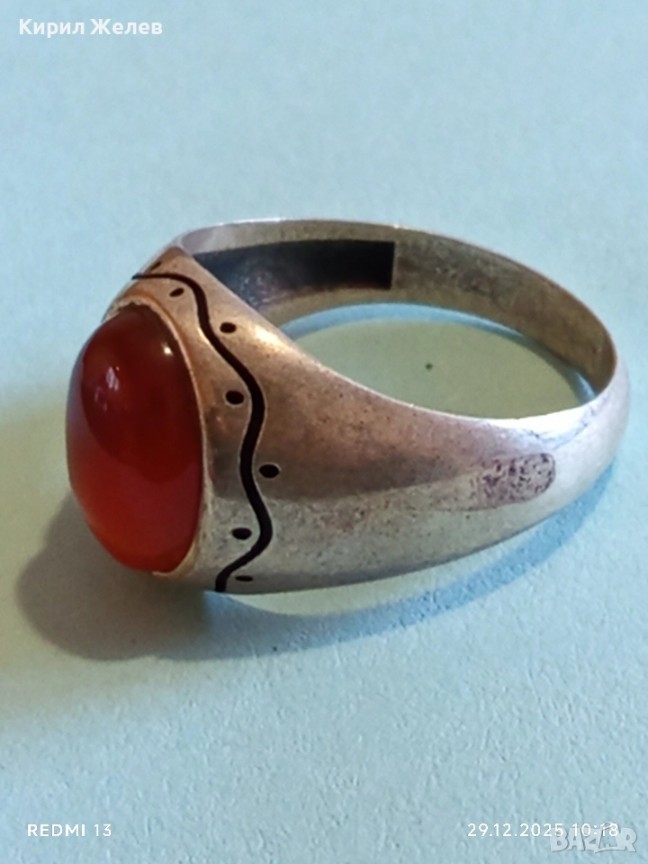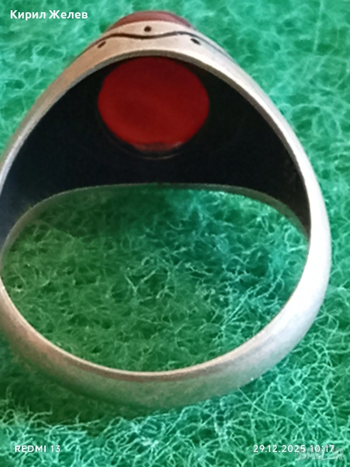 Винтидж сребърен пръстен с Червен Кехлибар ювелирна изработка 51791