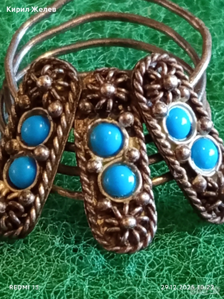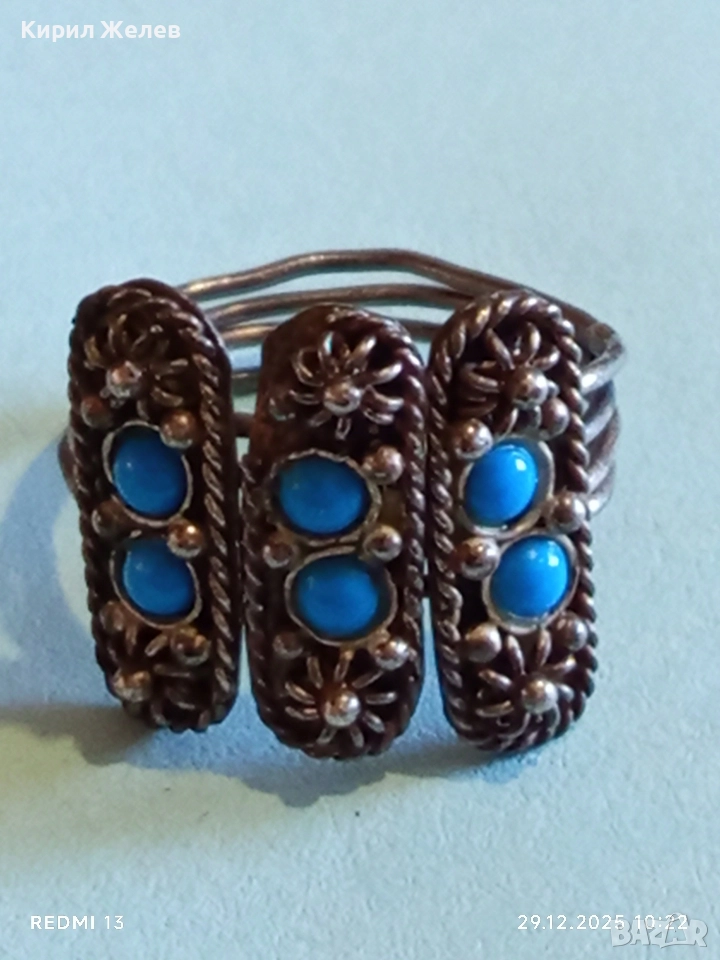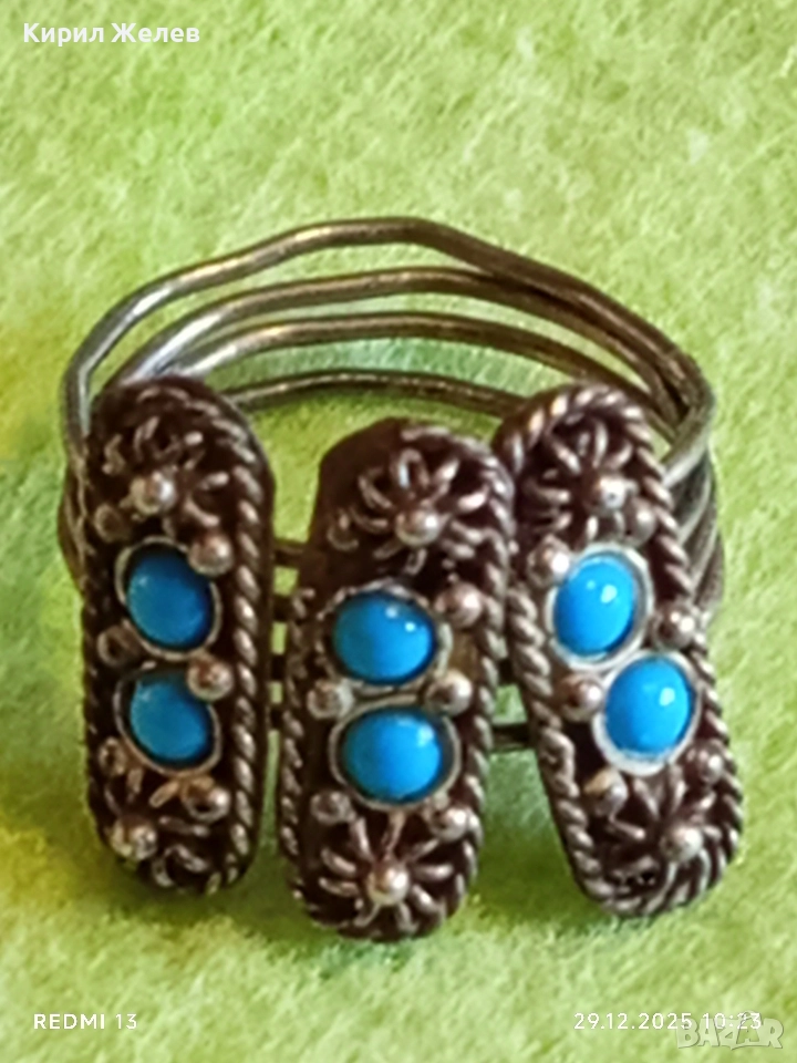 Сребърен пръстен Бохо стил с Тюркоаз орнаментиран авангарден 31114