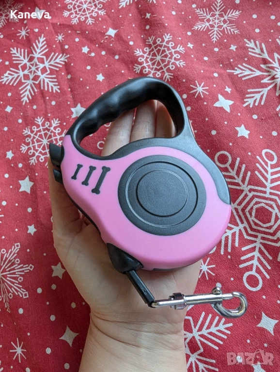 Розов повод с автоматична система за прибиране и заключване → Обява 52925702