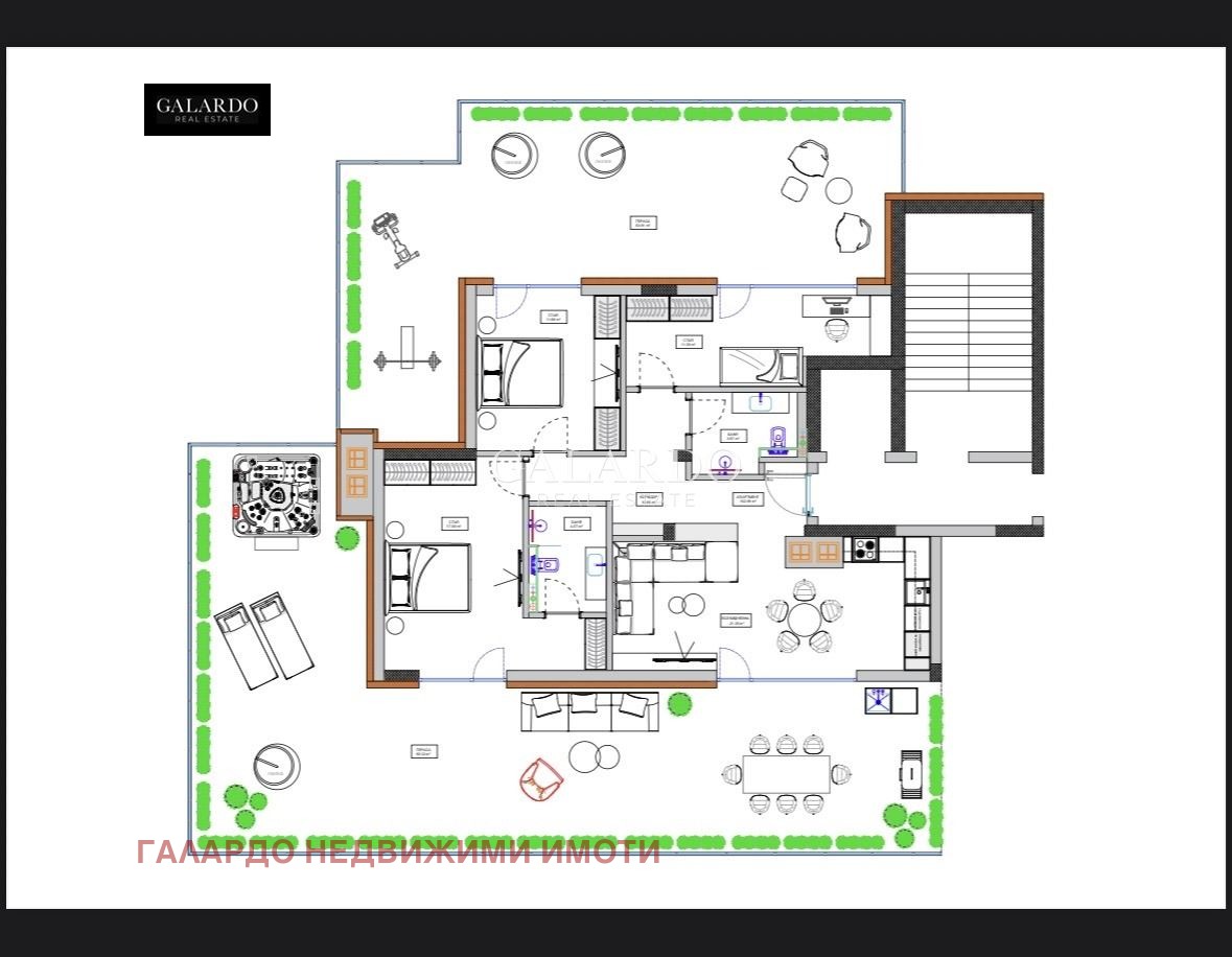 Galardo Real Estate предлага на вашето внимание невероятен четиристаен апартамент - пентхаус, който съчетава просторен интериор и впечатляваща открита тераса. Дом, който пренася усещането за къща високо над града, със собствен оазис под открито небе. Апартаментът е готов за нанасяне, без нужда от основен ремонт. Отоплението е предвидено на газ, има изводи за климатици. Тераса: уникална 151 кв.м панорамна тераса място за градина, барбекю, релакс зона или джакузи със зашеметяващи гледки. Този пентхаус съчетава уюта на съвременен дом с ексклузивността на частно покривно жилище. Сутрешно кафе с гледка към Витоша, вечери с приятели под звездите или собствена терасна градина това е повече от имот, това е начин на живот.
