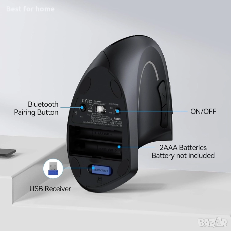 TECKNET Ергономична безжична Bluetooth вертикална мишка
