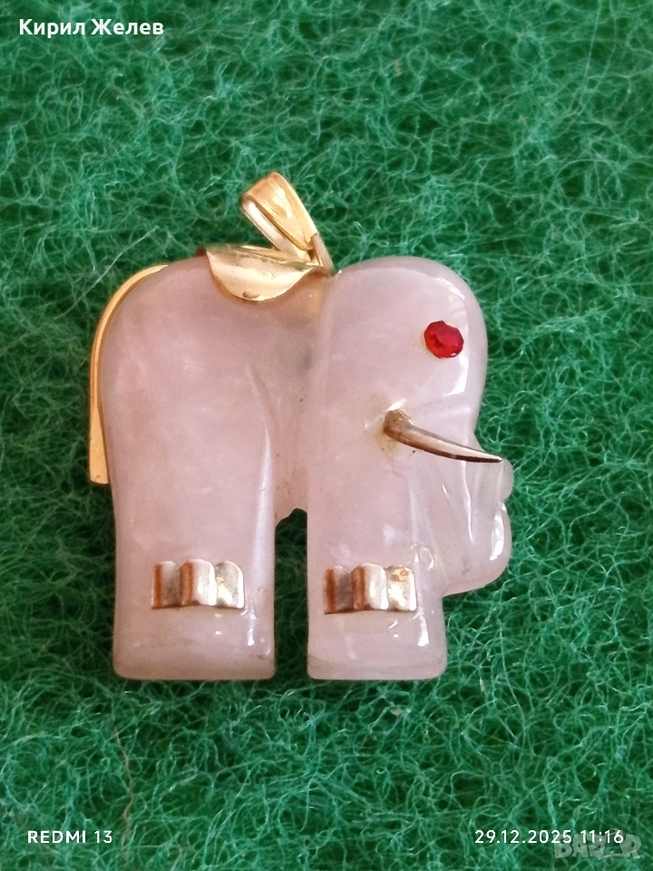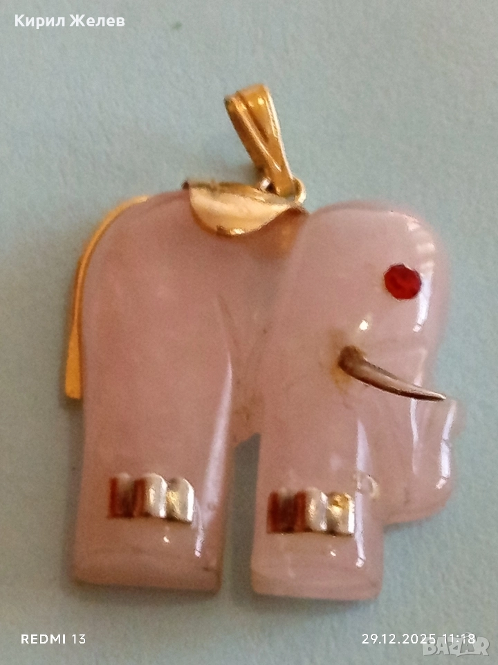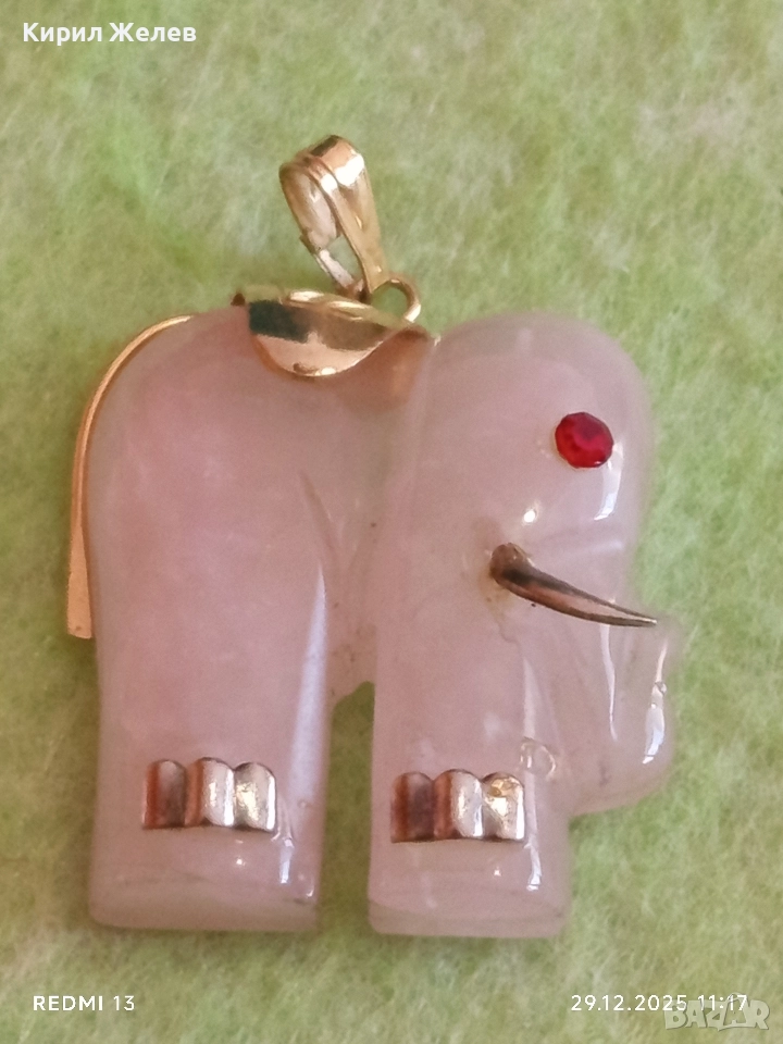 Късметлийска сребърна висулка слон от розов кварц и рубинено око 43571