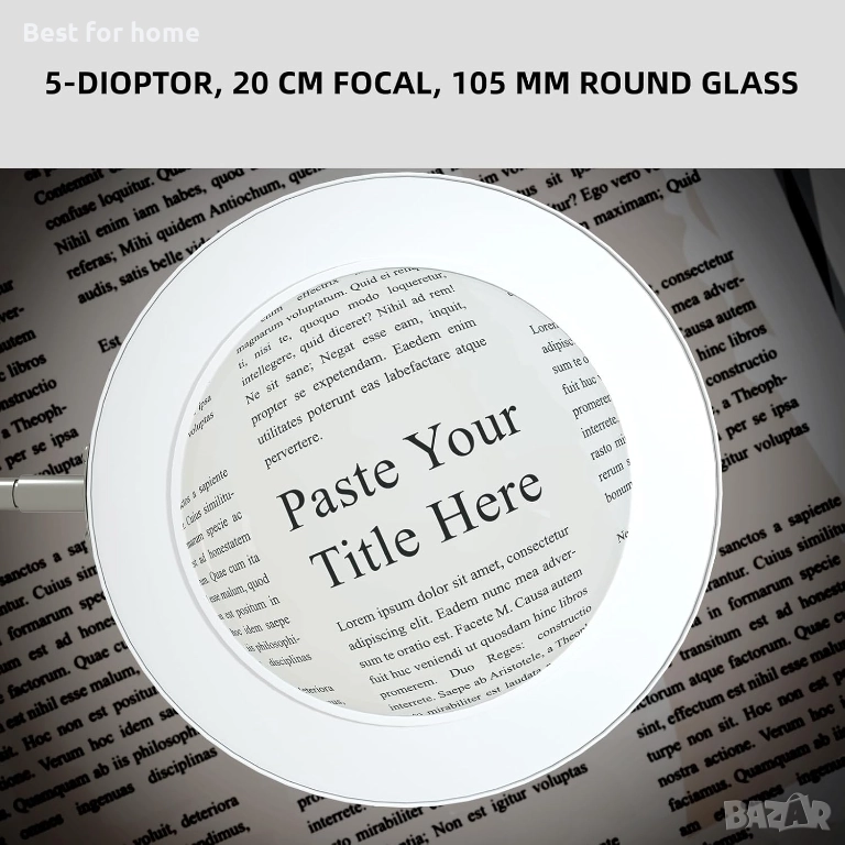 【5-диоптрична】Лупата, изработена от истинско стъкло, осигурява линейно увеличение 2,25x и площно 5x, с разстояние между лещата и обекта 20 см - оптимален баланс между разстояние и увеличение за козметици, моделисти, ремонти, шиене, маникюристи, запояване, четене, „Направи си сам“ проекти, плетене, плетене на една кука, изработка на мъниста и др.