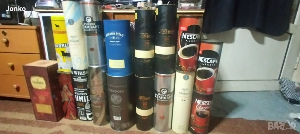 Продавам запазени нови кутии от уиски , водка ,узо ,ром ,Нескафе и вино , има тенекиени и картонени с различна вместимост.. 3 лв. за брой или 25 лв. За всички заедно общо 17 броя.