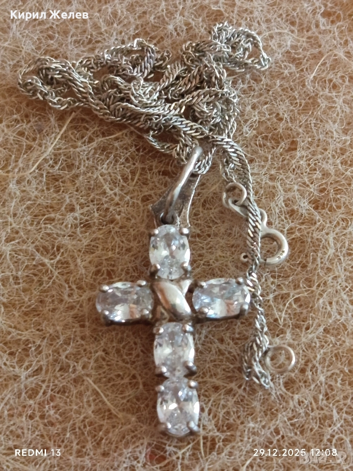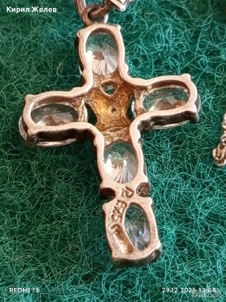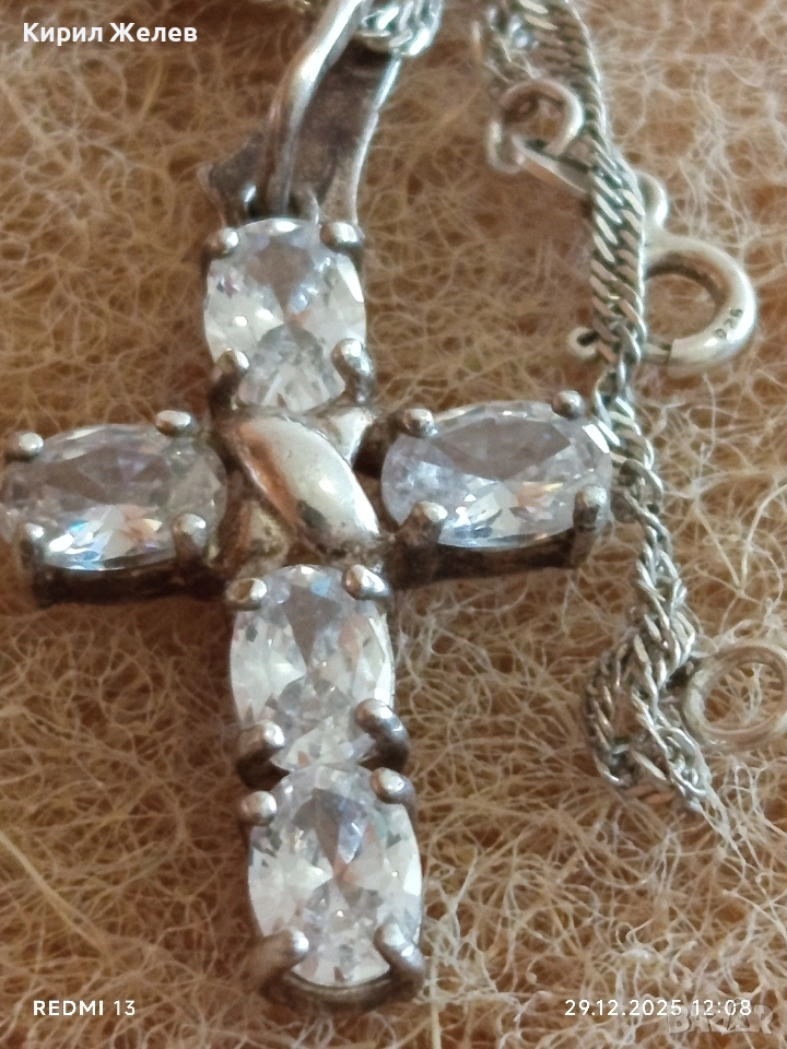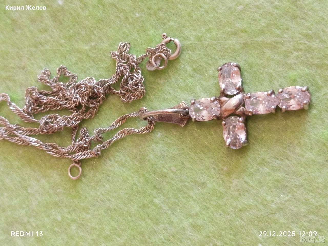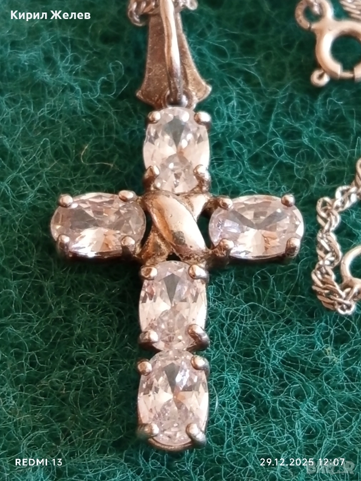 Сребърно колие с кръст инкрустиран с кристали елегантен дизайн 28152