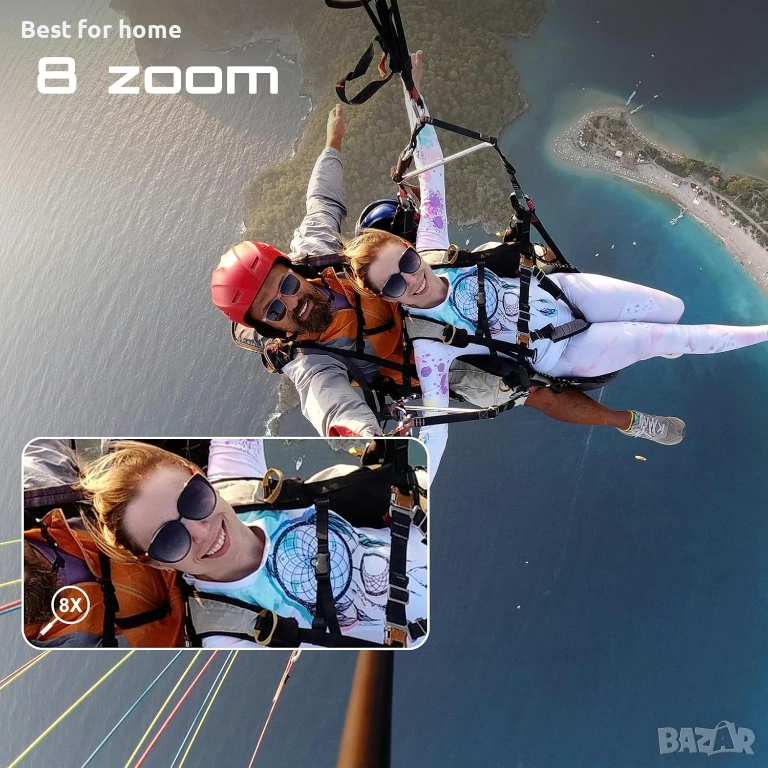 【Функция 8X Zoom и 64GB MicroSD карта】: Нашата нова, подобрена екшън камера M80 поддържа 8X цифрово увеличение, което ще ви отведе без ограничения в приключенията и ще ви позволи да заснемате по-резки и реалистични пейзажи. Камерата се предлага и с 64GB microSD карта за ваше удобство и за да отговори на вашите нужди от снимане.