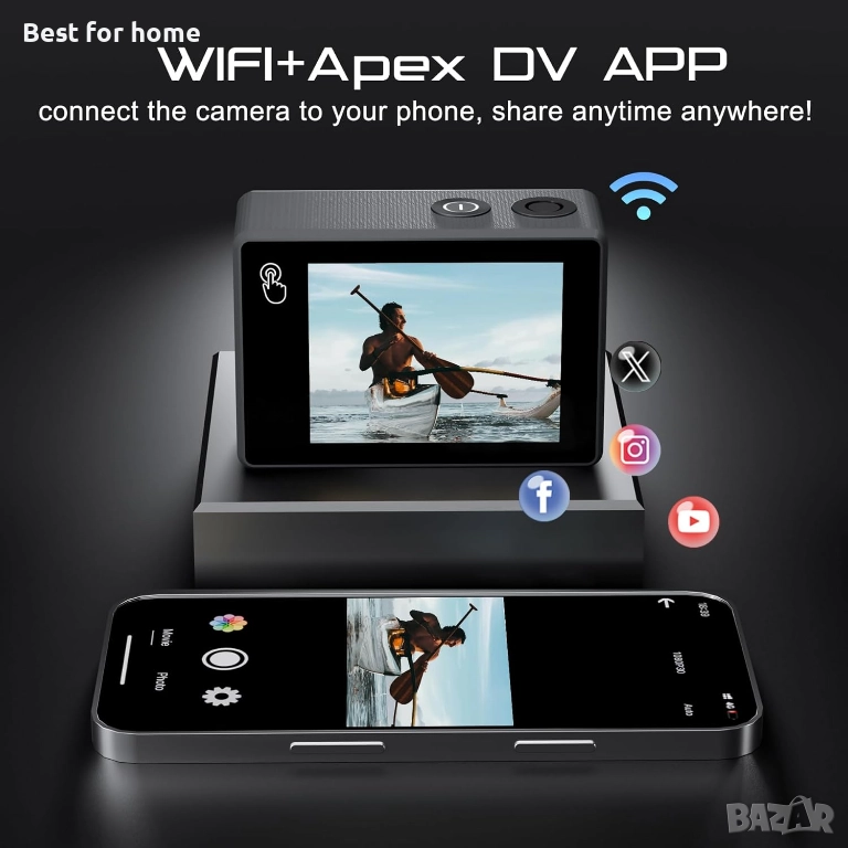 Apexcam Екшън камера 4K сензорен екран, 131 фута водоустойчива подводна камера
