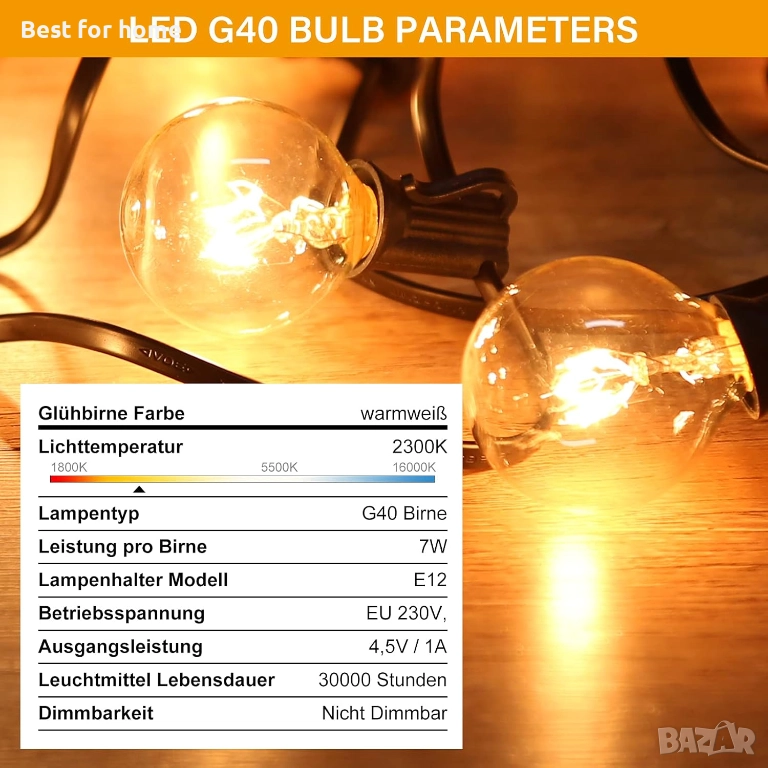 Създайте перфектното светлинно настроение за всеки повод - За романтична вечеря под звездите можете да приглушите светлините, за да получите мека и топла светлина. Ако имате оживено парти на открито, можете да ги осветите по-ярко. Тази адаптивност означава, че външните гирлянди G40 могат да се използват както на закрито, така и на открито, като можете да украсите тераса, палатка, спалня, балкон и други места.