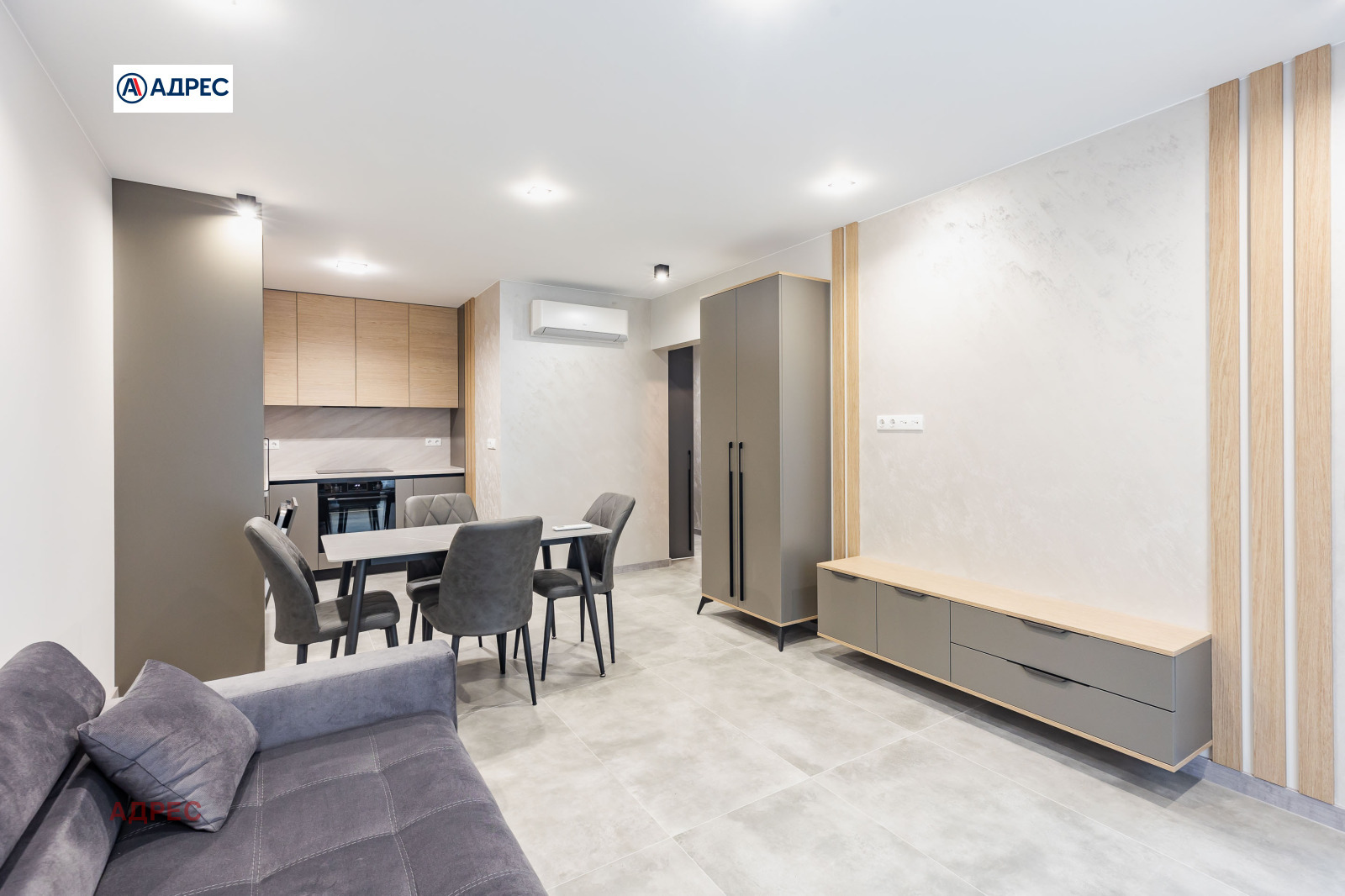 Адрес отдава под наем чисто нов двустаен апартамент в квартал Чайка. Състои се от просторна дневна с оборудвана кухня (включително голяма съдомиялна), спалня с двойно легло, балкон, коридор, килер. Пералнята е комбинирана със сушилня, отоплението и охлаждането са с висок клас климатик. Наемната цена включва интернет (А1), има възможност за наемане на паркомясто. Отдава се дългосрочно на наематели без домашни любимци. Наемната цена е с ДДС.