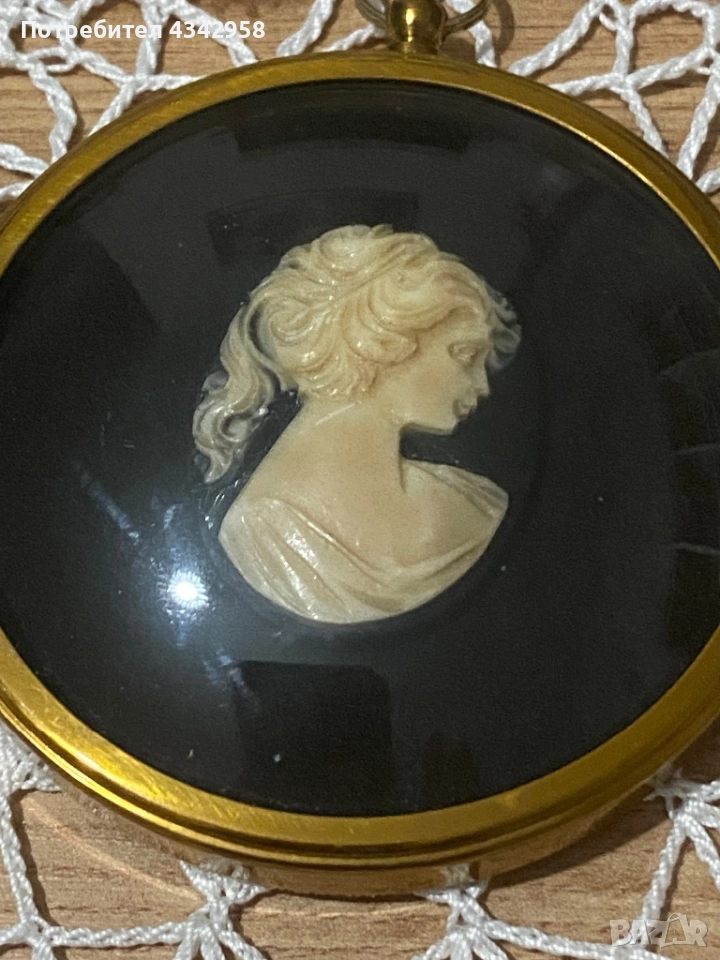 Елегантна винтидж миниатюра тип камея с класически дамски профил.