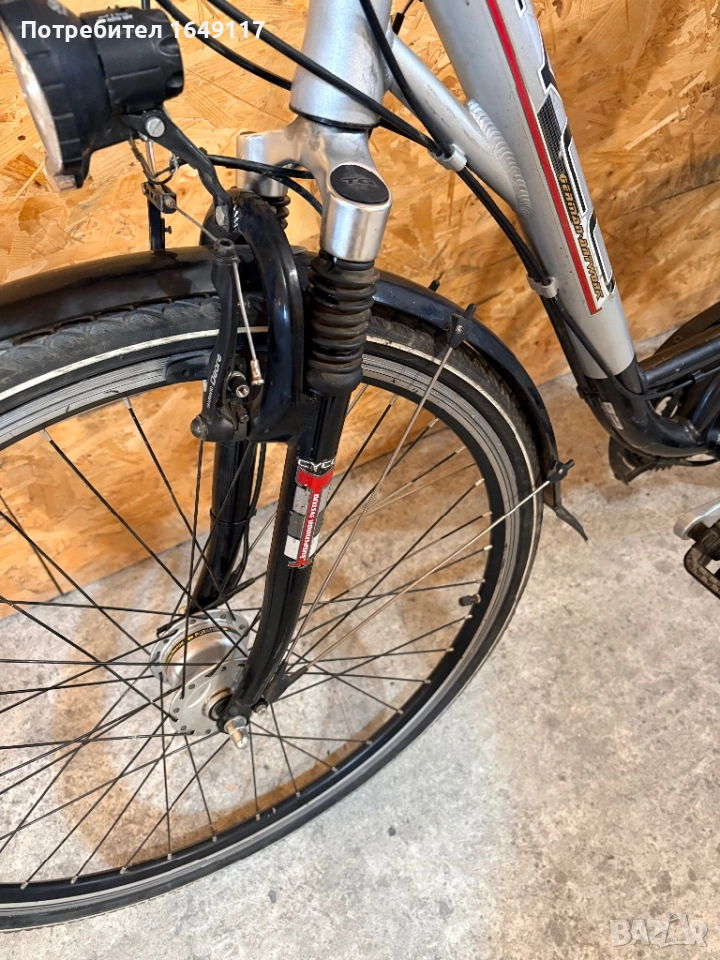 Продавам 28цола, малко употребяван, дамски-градски велосипед CYCO TR28[made in Germany]. Олекотена, алуминиева рамка - 50см с ниско прекрачване. Външни скорости Shimano