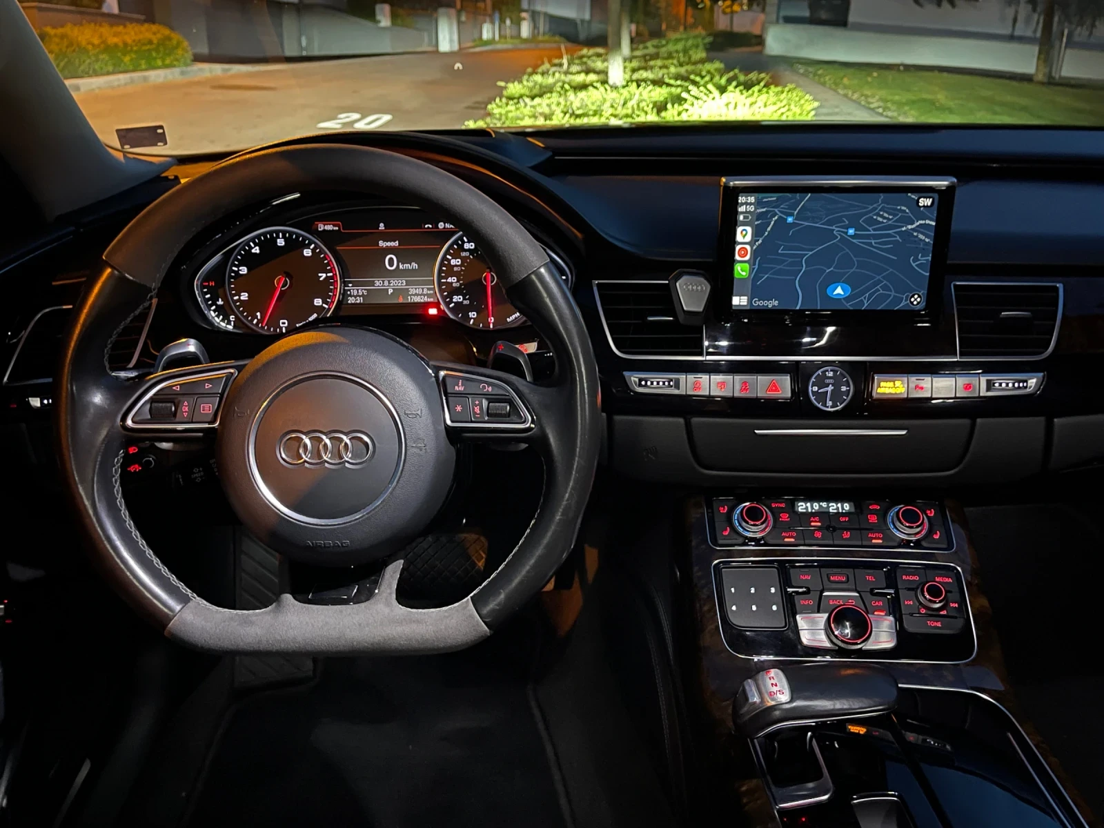 Аз съм втори собственик в България. Причината за продажба е, че не влиза в асансьора за коли в новото жилище. Съответно съм отворен за предложения за бартер за по-малък автомобил, може и електрически. Има софтуер още от Канада и е 400+ коня. Колата сега е с втория чифт джанти - 19ки и зимни гуми - последна снимка, с които се продава. Колата има активиран Apple CarPlay и два чифта оригинални стелки. Воланът е от rs6, както и втория чифт джанти, които са оригинални магнезиеви 21' с чисто нови гуми на 1000км. Липа от снимките е свален. Давам го и него при желание. Колата има каско и една дребна забележка на задна броня, която може да се оправи по каско. При въпроси може да ме потърсите по телефона, за да предоставя и VIN за проверка. Доста от консумативите са сменяни наскоро. Обслужена преди 1000км и ремонтирана картерна вентилация и вихрови клапи. Прегледано е окачването и са сменени три носача.