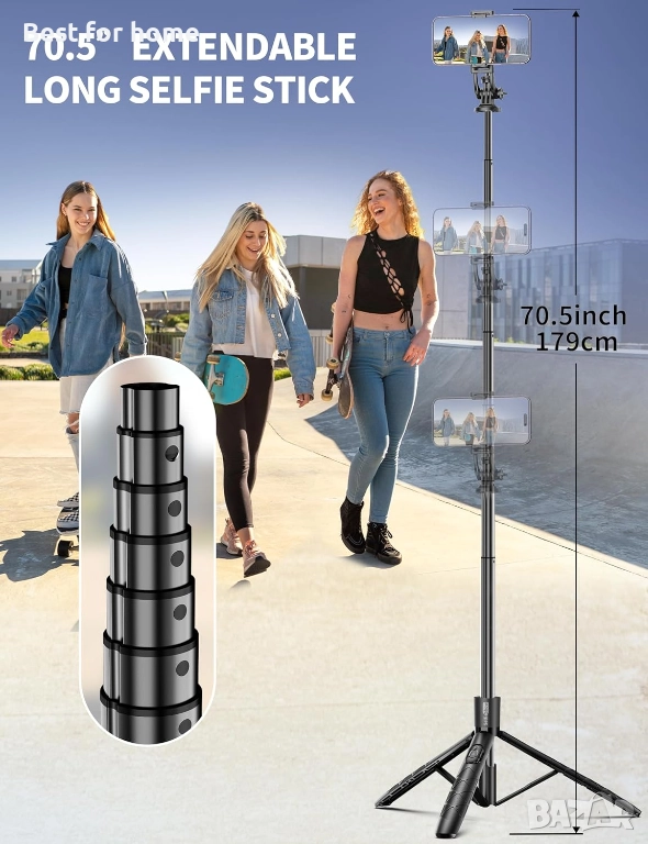 Впечатляваща височина: Разтяга се от 32 см до цели 147 см, което го прави идеален за групови снимки и видеоклипове в цял ръст.