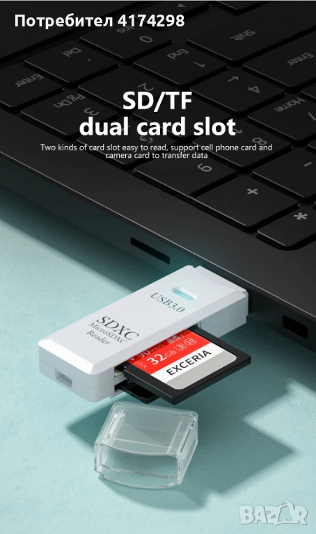 USB 3.0 четец на карти 2 в 1 USB 2.0 към SD Micro SD Tf адаптер за памет за Mac PC лаптопи Аксесоари, снимка 1 - USB Flash памети - 52929286 USB 3.0 четец на карти 2 в 1 USB 2.0 към SD Micro SD Tf адаптер за памет за Mac PC лаптопи Аксесоари, снимка 2 - USB Flash памети - 52929286 USB 3.0 четец на карти 2 в 1 USB 2.0 към SD Micro SD Tf адаптер за памет за Mac PC лаптопи Аксесоари, снимка 3 - USB Flash памети - 52929286 USB 3.0 четец на карти 2 в 1 USB 2.0 към SD Micro SD Tf адаптер за памет за Mac PC лаптопи Аксесоари, снимка 4 - USB Flash памети - 52929286 USB 3.0 четец на карти 2 в 1 USB 2.0 към SD Micro SD Tf адаптер за памет за Mac PC лаптопи Аксесоари, снимка 5 - USB Flash памети - 52929286 USB 3.0 четец на карти 2 в 1 USB 2.0 към SD Micro SD Tf адаптер за памет за Mac PC лаптопи Аксесоари, снимка 6 - USB Flash памети - 52929286 USB 3.0 четец на карти 2 в 1 USB 2.0 към SD Micro SD Tf адаптер за памет за Mac PC лаптопи Аксесоари, снимка 7 - USB Flash памети - 52929286 USB 3.0 четец на карти 2 в 1 USB 2.0 към SD Micro SD Tf адаптер за памет за Mac PC лаптопи Аксесоари, снимка 8 - USB Flash памети - 52929286 1/8