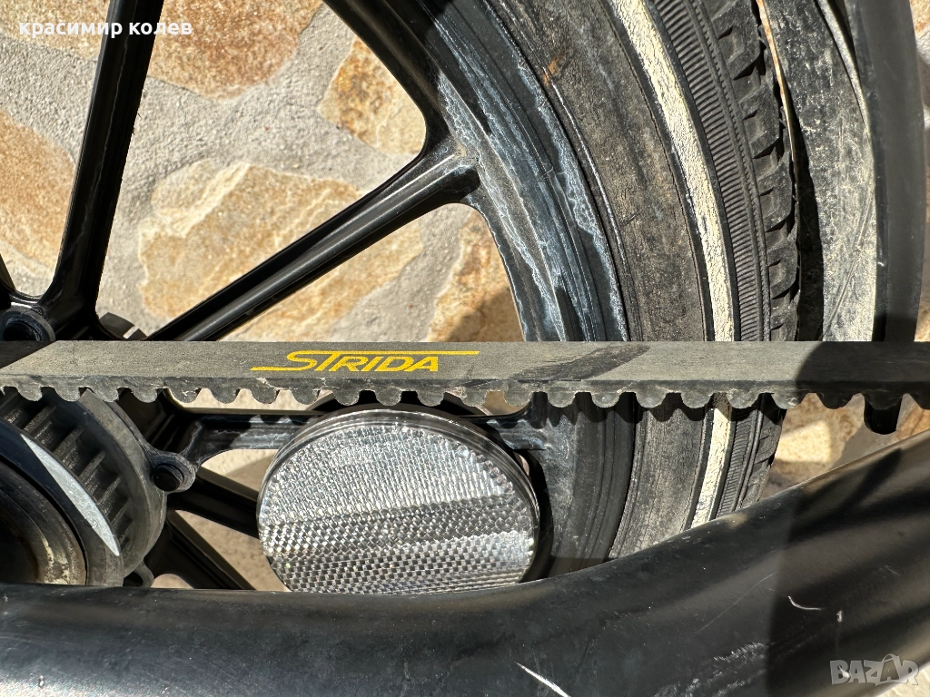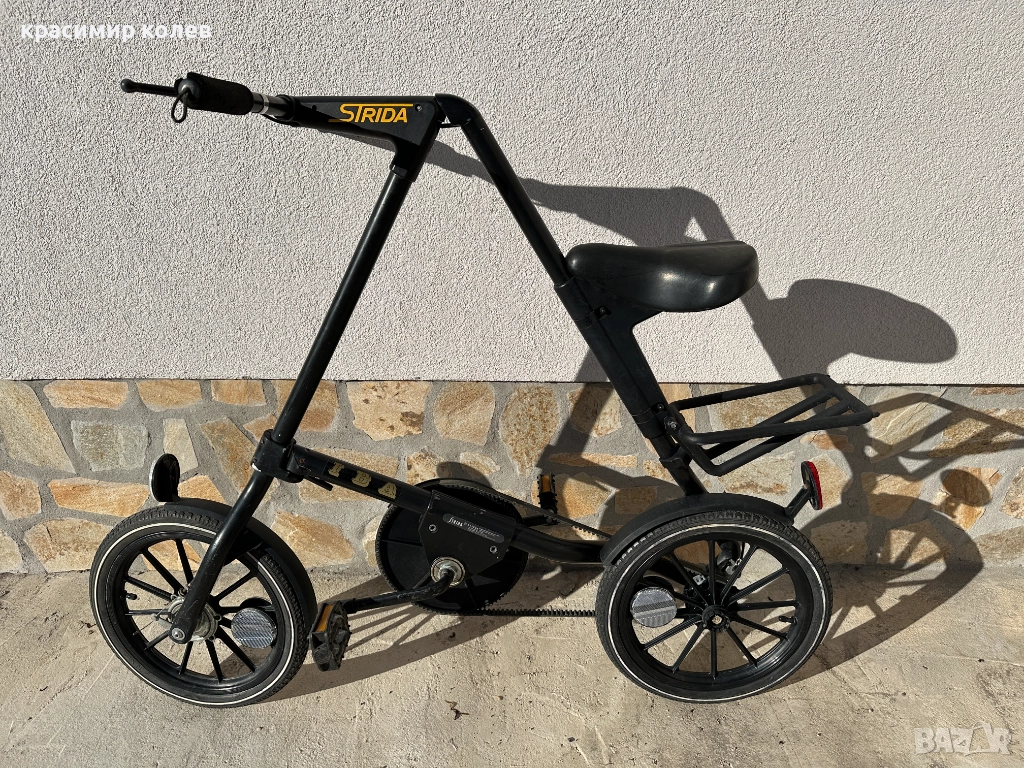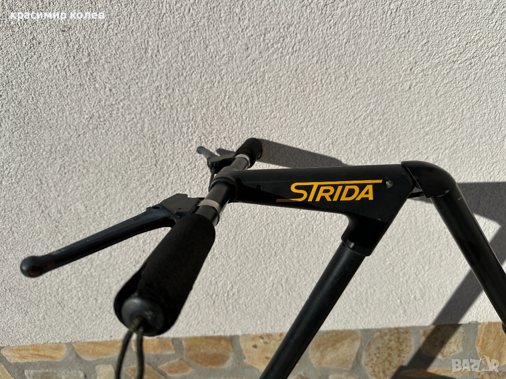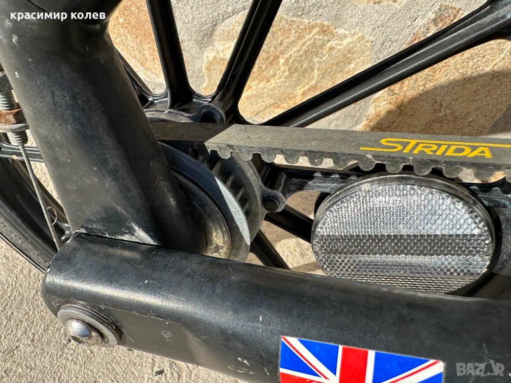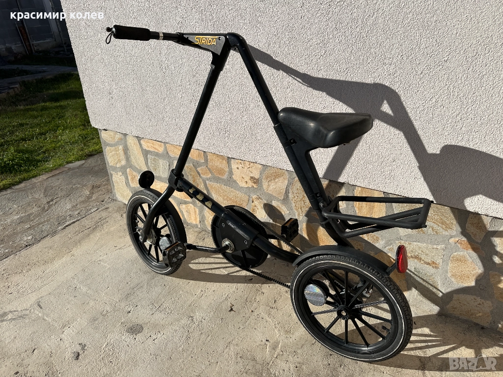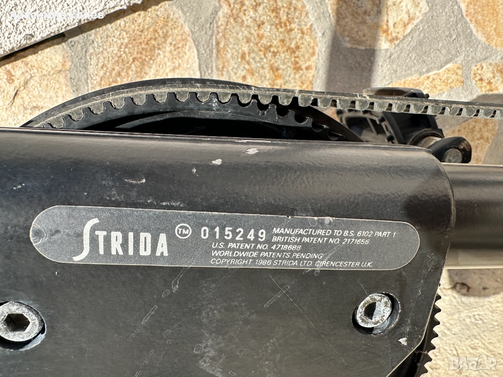Strida е преносим велосипед с ремъчно задвижване и отличителна A-образна сгъваема рамка, проектиран от британския инженер и дизайнер Марк Сандърс.