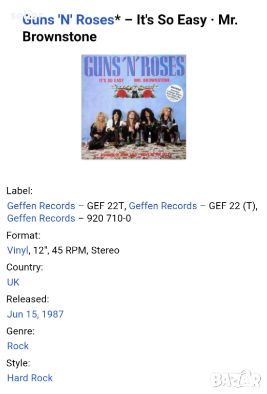 Guns 'N' Roses* – It's So Easy · Mr. Brownstone Maxi Single 12 Издание 🇬🇧 UK 1987г Състояние на ви → Обява 52930492