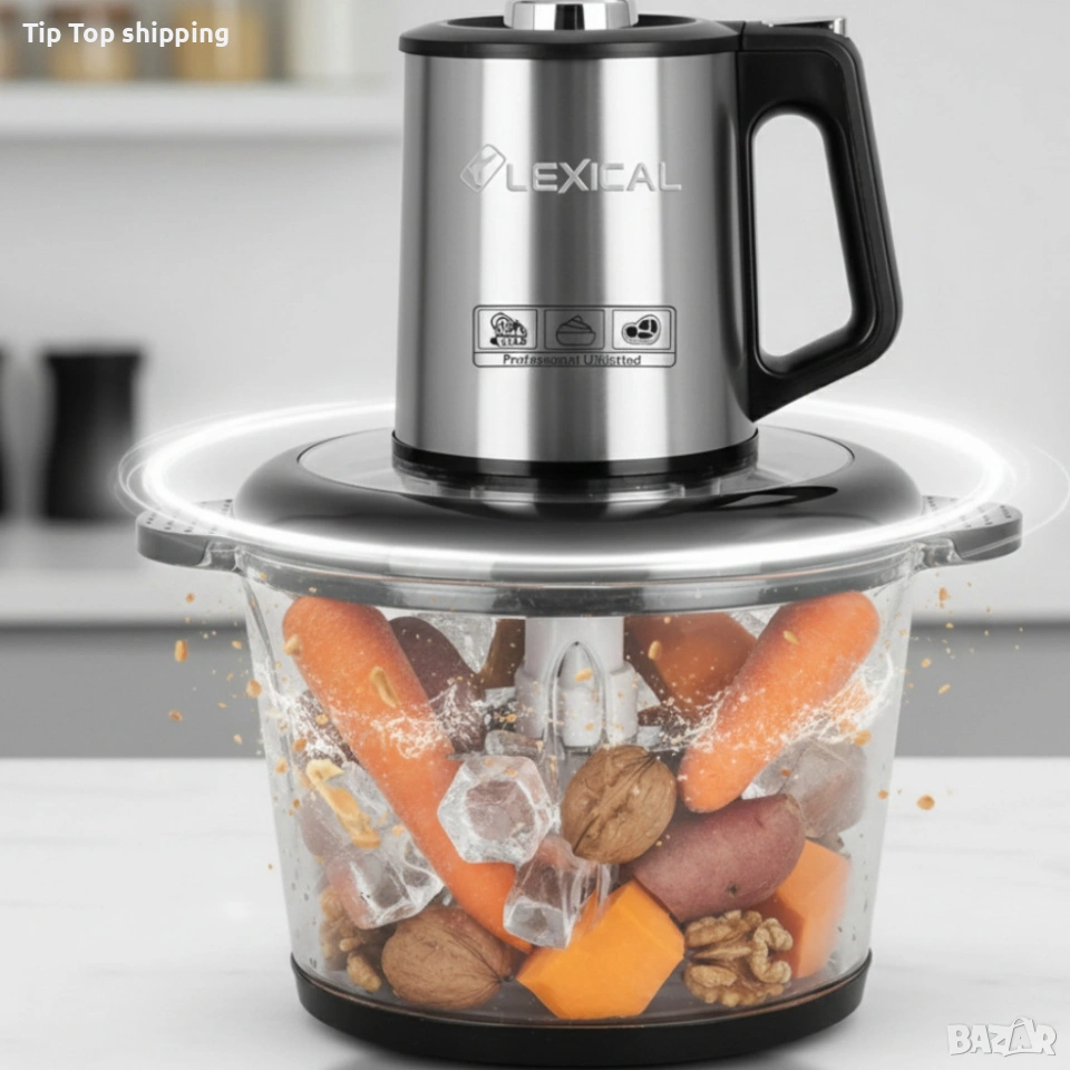 Вид уред: Електрически кухненски чопър; Модел: Lexical LCH-1970; Мощност: 400 W; Напрежение: 220–240 V ~ 50/60 Hz; Обем / вместимост: 3 литра; Режими: 3 нива на скорост; Ножове: 4 остриета от неръждаема стомана; Купа: Стъклена купа за рязане; Материали / корпус: Неръждаема стомана; Ниво на шум: Нормално за категорията; Почистване: Лесно, благодарение на разглобяемите елементи; Батерия: Не използва батерии – работи с електрическата мрежа.