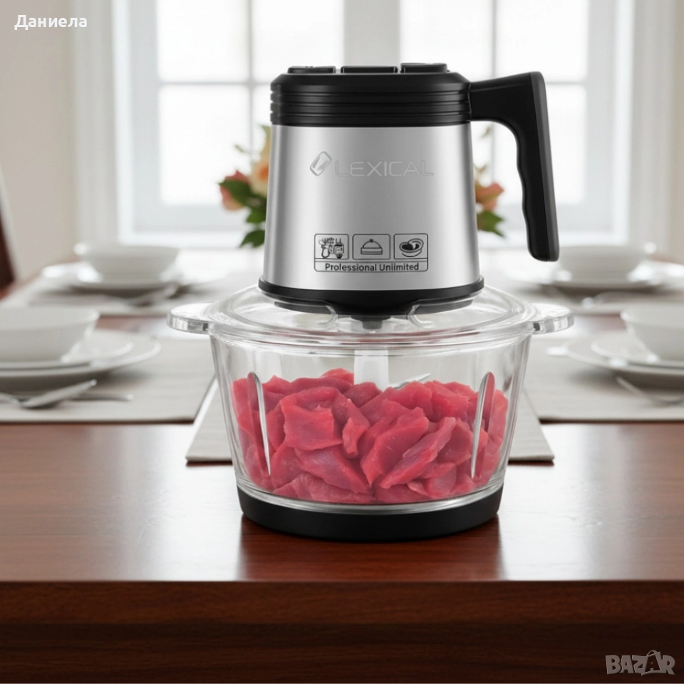 Електрически чопър Lexical LCH-1956 с 6 титаниеви ножа и стъклена купа