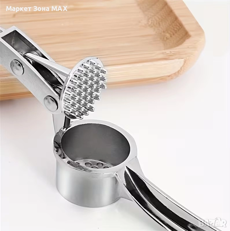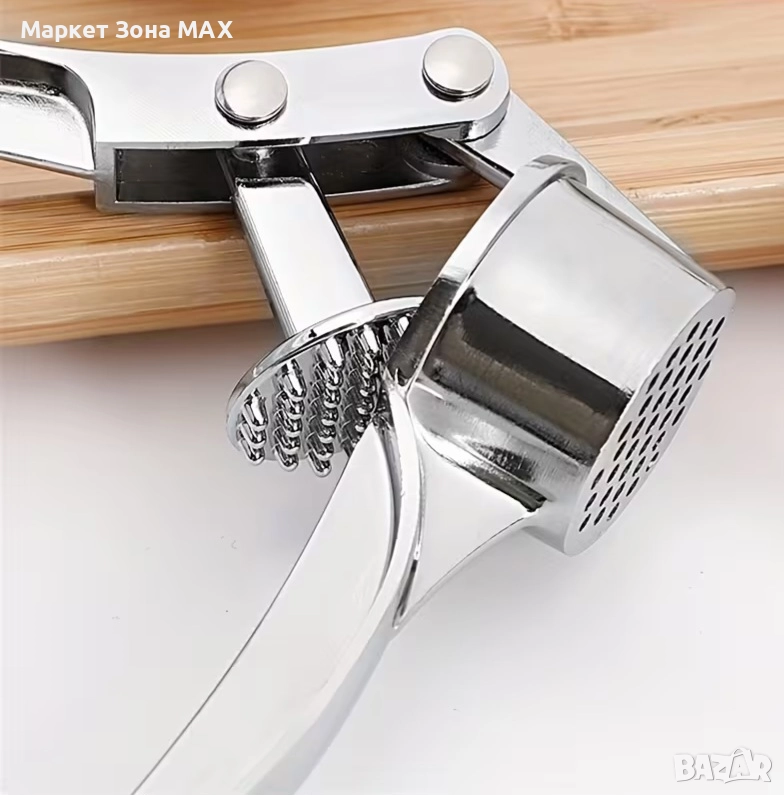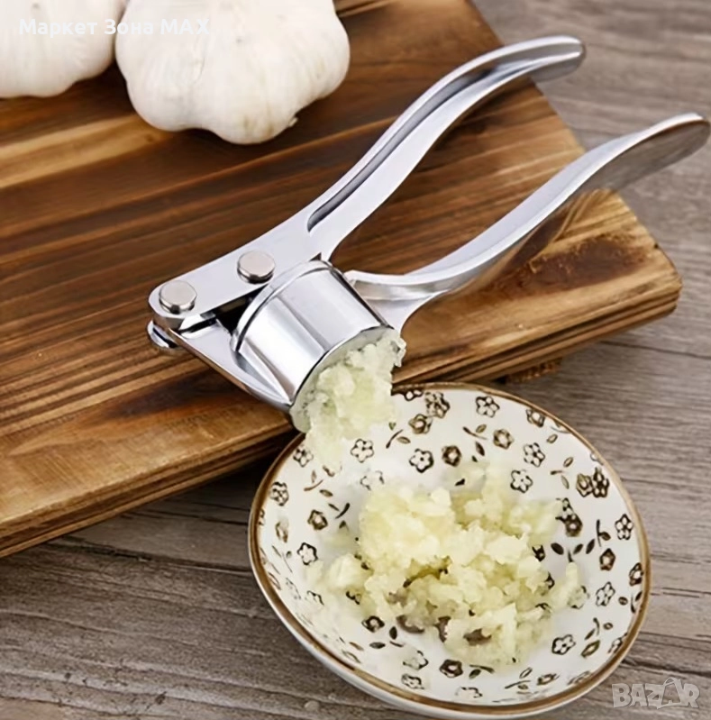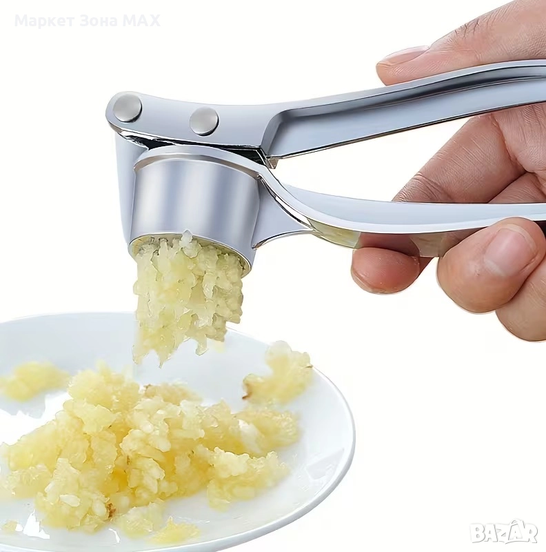 Ръчна преса за чесън, джинджифил и лимон с ефективно смилане и компактен дизайн.