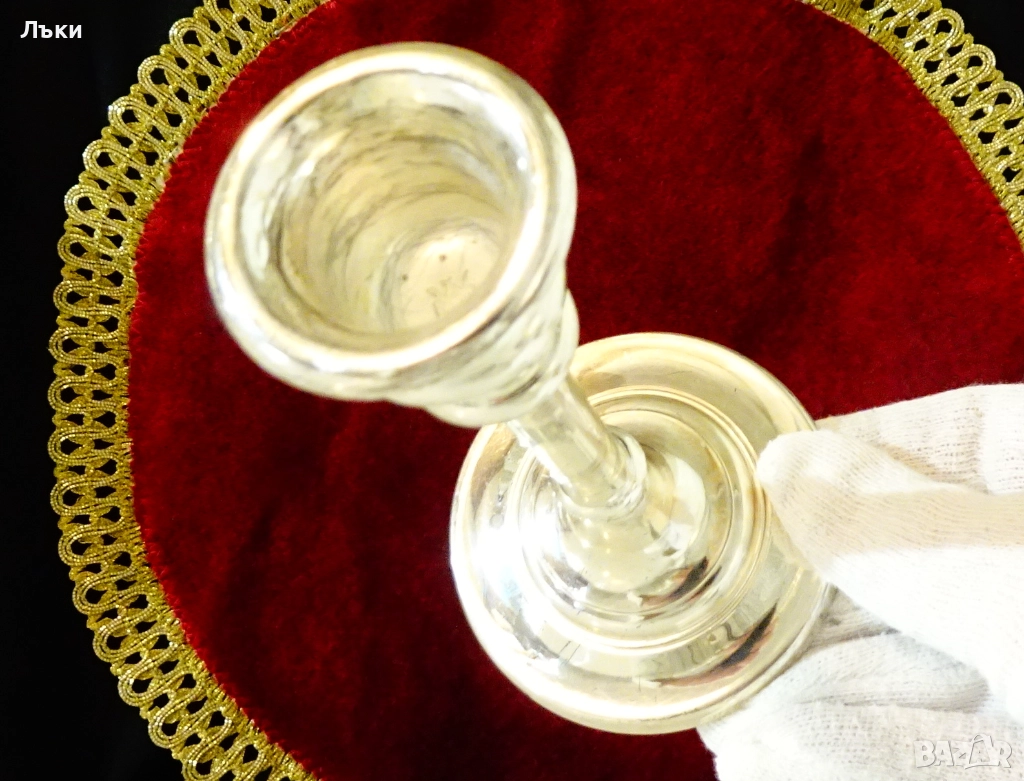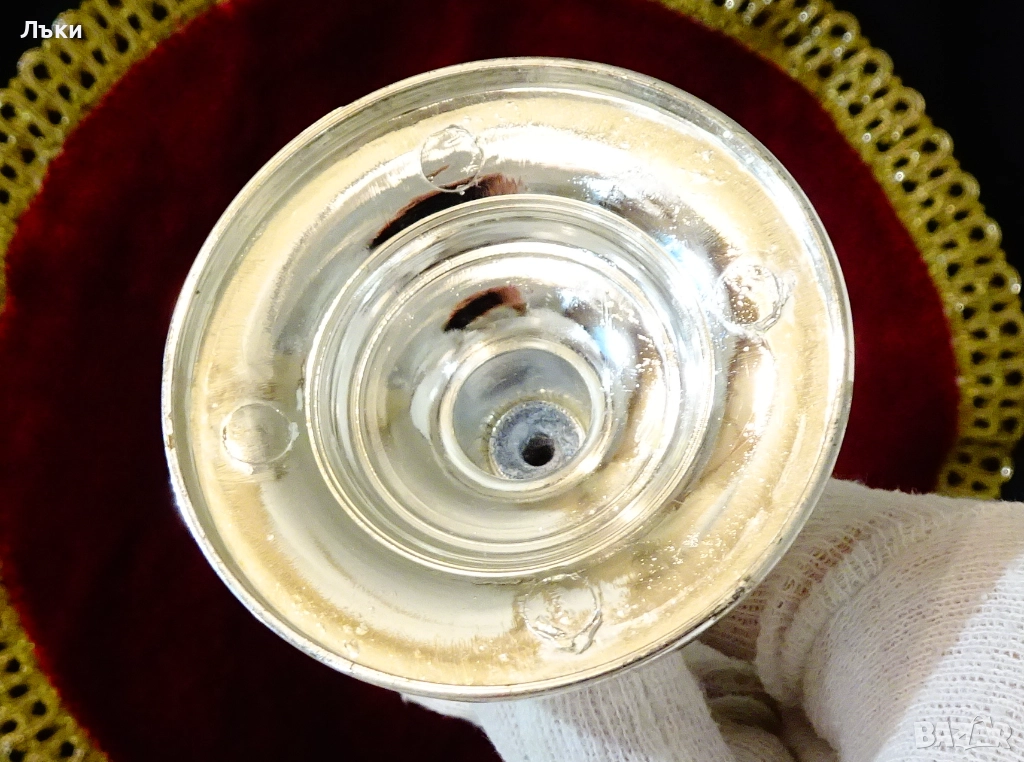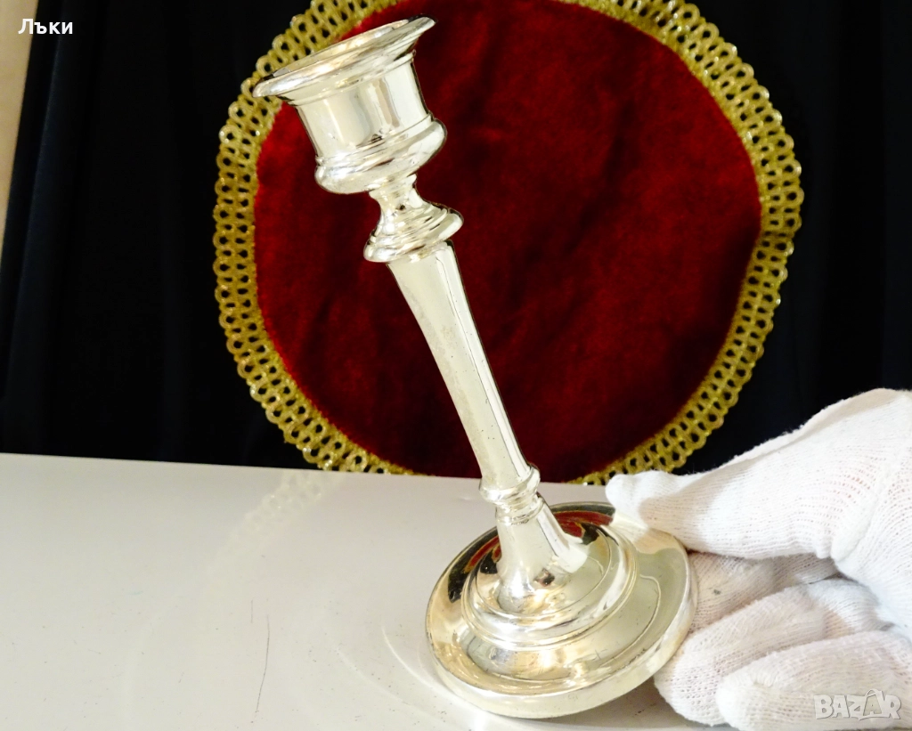 Стар свещник,изработен от масивна мед,дебело посребрен с