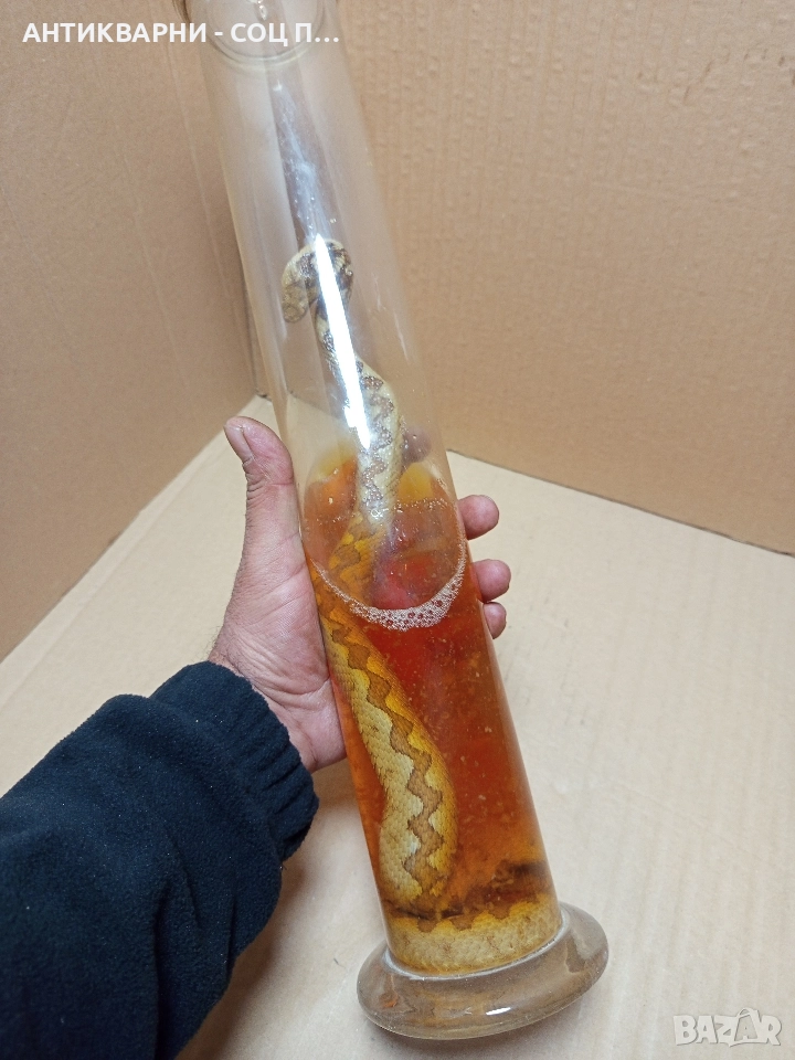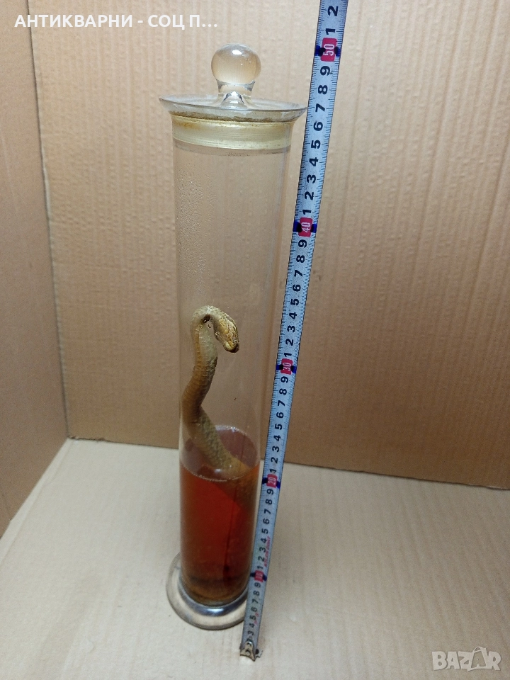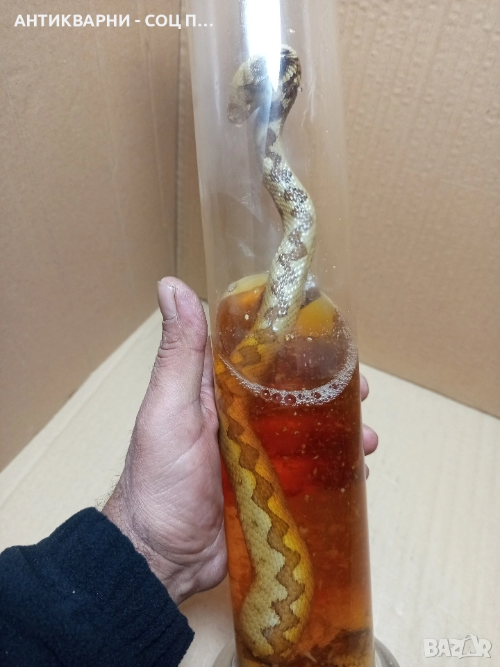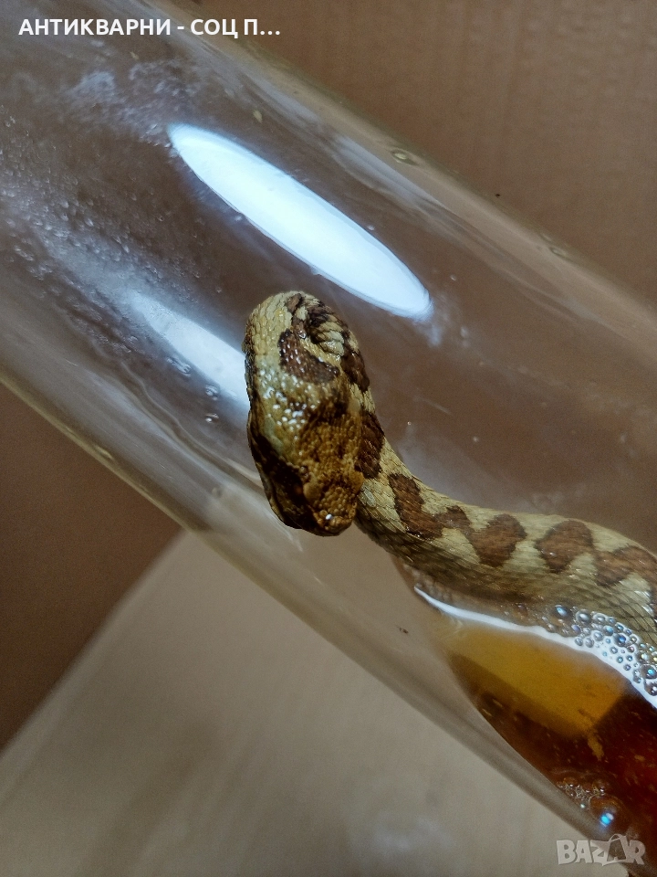 Здравейте продавам стара препарирана змия усойница в отлично състояние за годините си