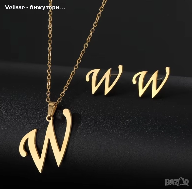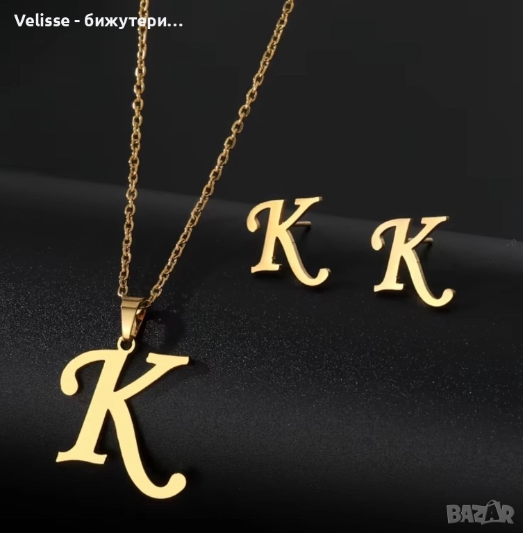 Комплект колие + обеци с буквичка → Обява 52930930