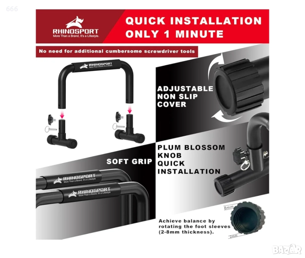 Успоредки Rhinosport, 26 см, 300 кг, 49x26x26 см, Черни → Обява 52930937