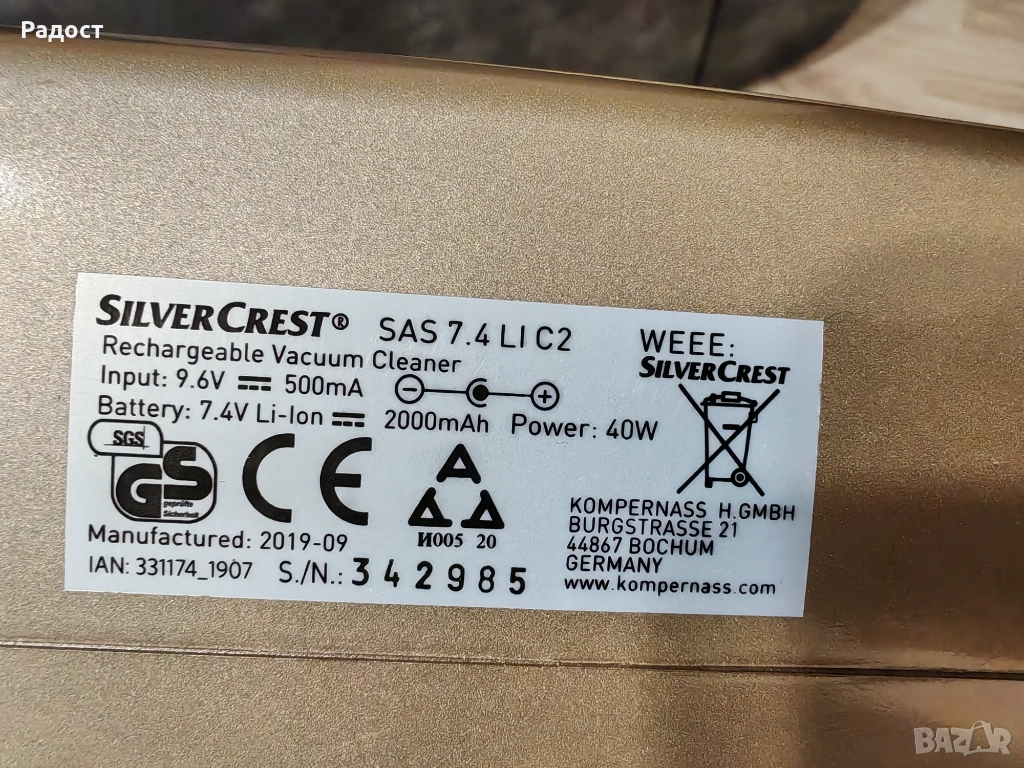 Ръчна прахосмукачка Silver Crest → Обява 52930974