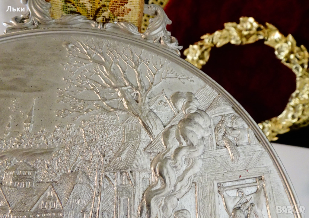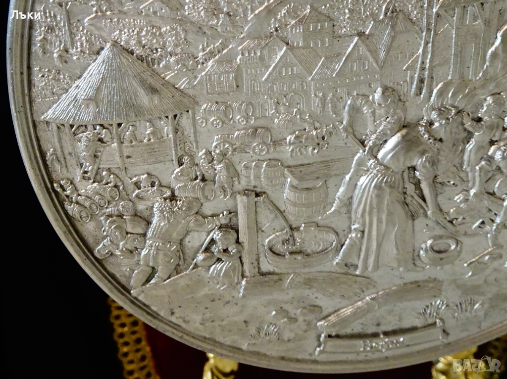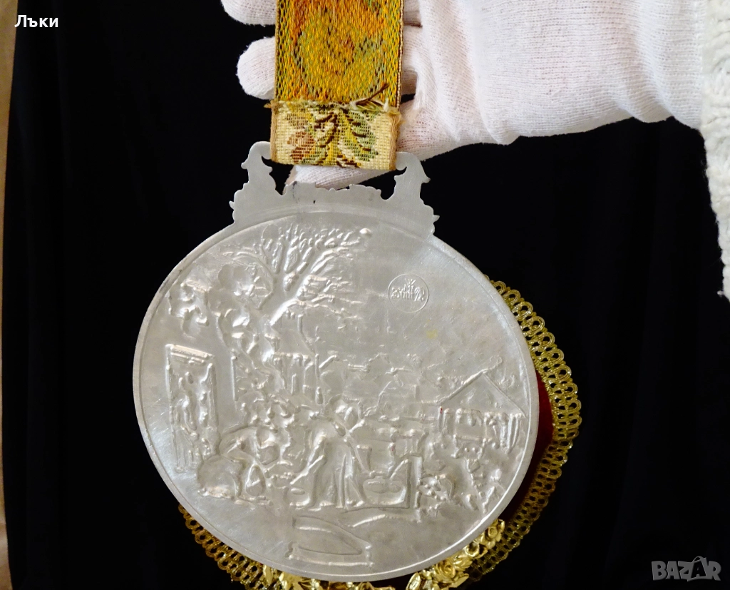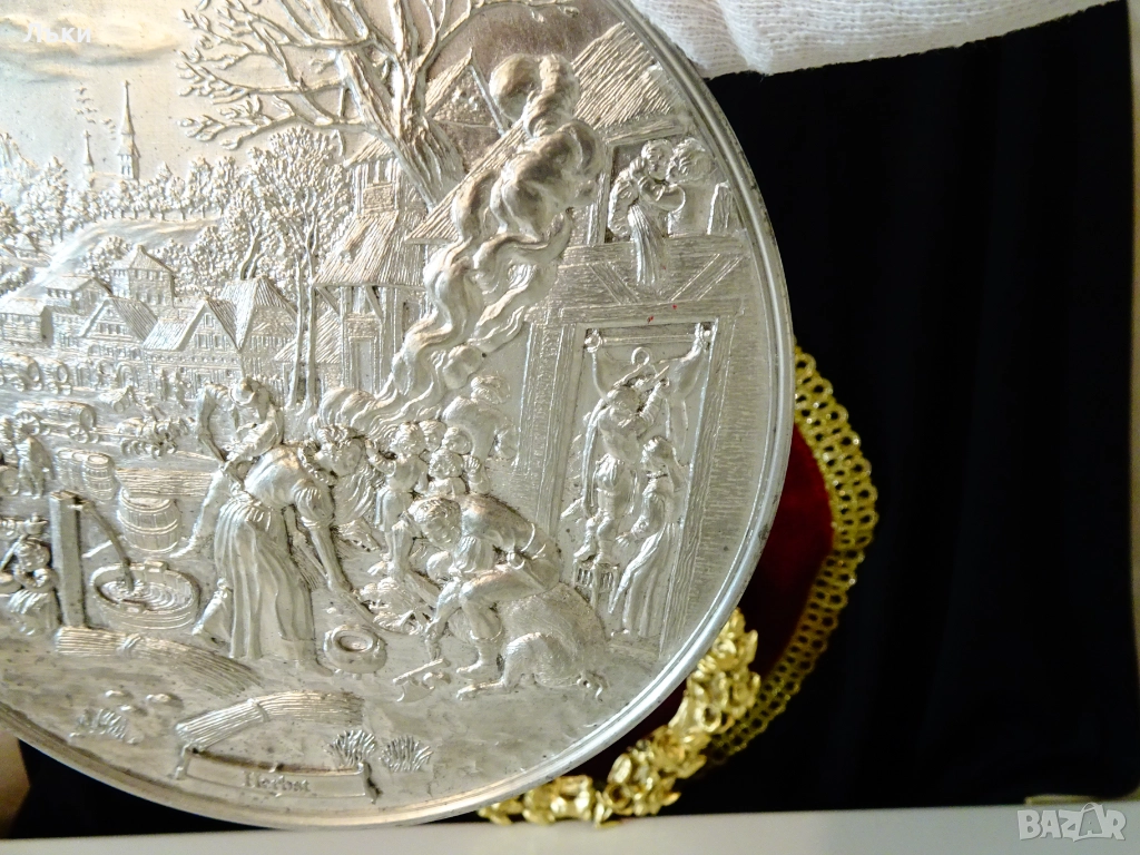 медал,плакет,майсторска ръчна изработка от 95% калай и 5% сребро,маркирано с