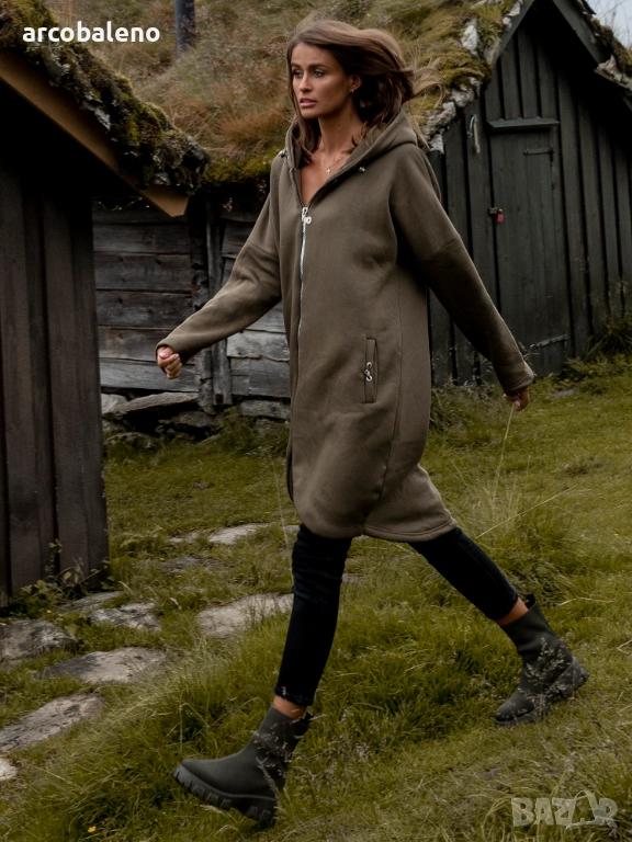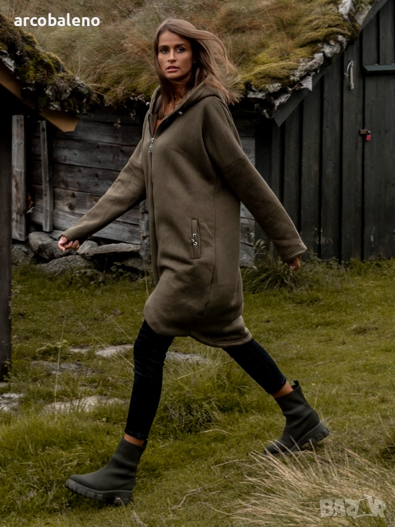 Дълъг дамски преходен суичър с качулка и цип Tina, 2цвята