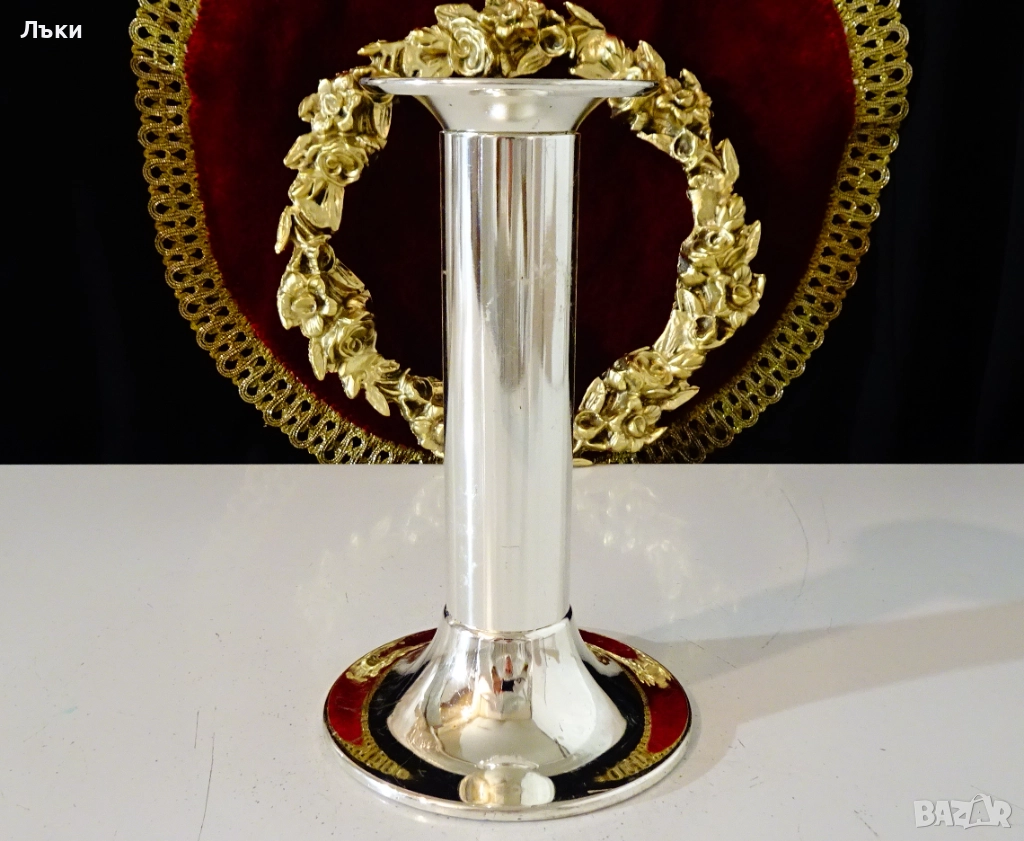 Стар масивен бронзов свещник,дебело посребрен с висока проба