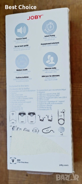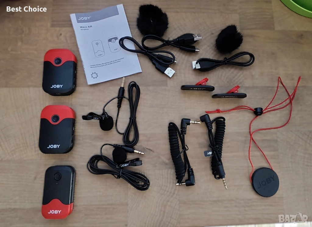 Безжична микрофонна система JOBY Wavo AIR 2-Person, предназначена за влогъри, режисьори, интервюиращи и създатели на съдържание.